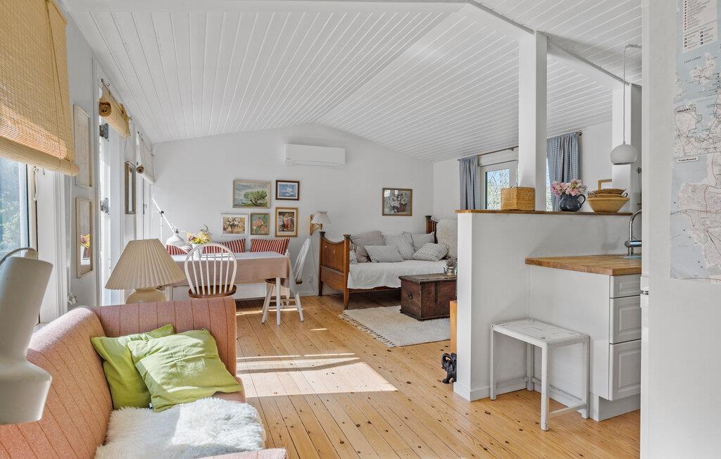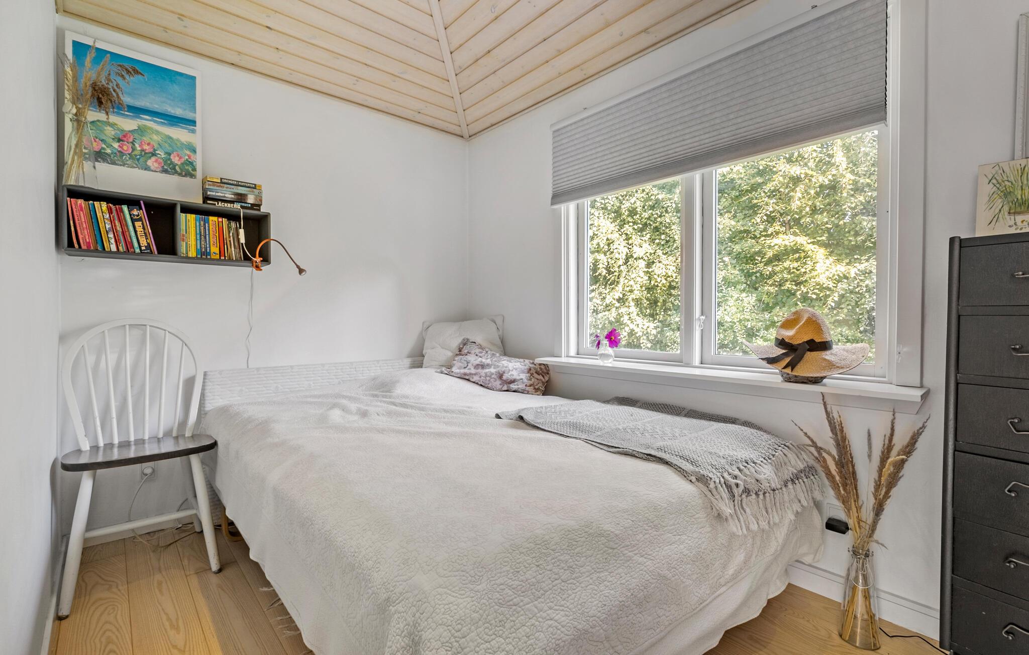 Der er fred, ro og idyl på denne grund, hvor I får en skøn base i dette indbydende sommerhus. Her kan hele familien sætte hverdagen på pause og koncentrere sig om at holde fri. Boligen emmer af lys, luft og klassiske skandinaviske indretningsløsninger. Find sammen til en rolig morgenmad ved spisebordet og nyd den skønne udsigt til haven, mens I lægger jer fast på et program.