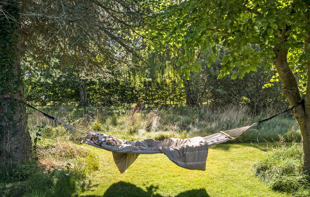 Når I vender hjem fra dagens eventyr, er det herligt at finde en plet på den hyggelige naturgrund og nyde solen. Sæt jer til rette med en kop kaffe, mens I kigger ud på omgivelserne og lytter til naturens lyde. Børnene har god plads til at boltre sig i haven, mens I lægger sidste hånd på grillmiddagen.