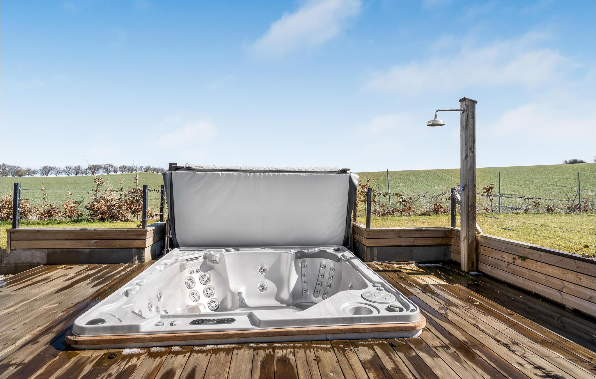 Er vejret godt, trækker I med garanti ud på den enorme terrasse, hvor I finder diverse havemøbler af høj kvalitet, herunder spisepladser og liggestole til solbadning. Selvfølgelig har I også grill til rådighed, så I kan grille under de milde sommeraftener, og et særligt højdepunkt er det store udendørs spabad, hvor en skøn feriedag kan afsluttes med en drink i hånden. Foretrækker I indendørsspa, jamen, så har huset selvfølgelig også det. Huset ligger som nævnt på en gigantisk naturgrund med nærmest uendelig plads at boltre sig på. I har udsigt til marker og vil ofte kunne spotte hjorte.
