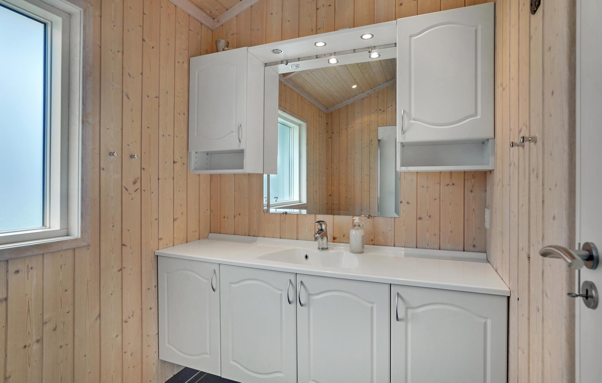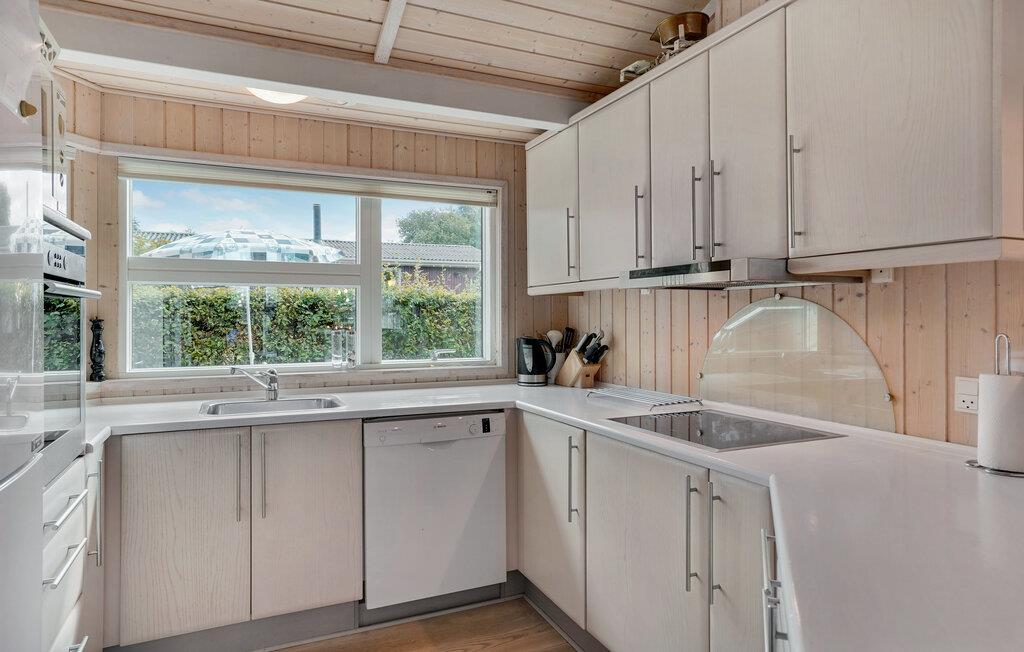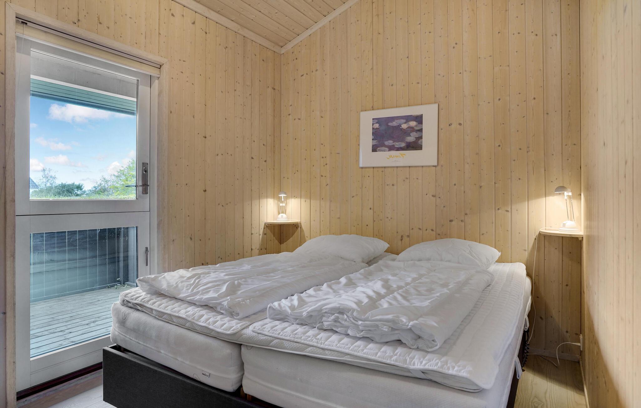Ved Drøsselbjerg Strand indbyder dette skønne feriehus til en afslappende ferie. Her kan I koncentrere jer fuldt ud om at hygge jer og tilbringe masser af kvalitetstid med familien i den rummelige stue. Den store vinduesfront oplyser rummet med naturligt lys, mens brændeovnen spreder en beroligende varme. Herfra kommer I til den største af to terrasser, der er det ideelle sted at ligge i solen eller til at indtage jeres feriemåltider.