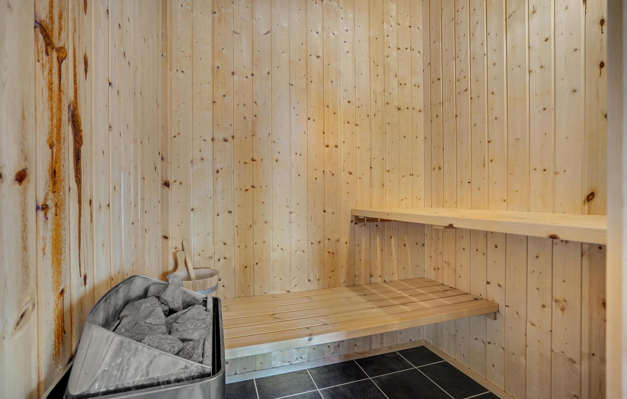 Velkommen til dette rummelige feriehus med sauna nær stranden.