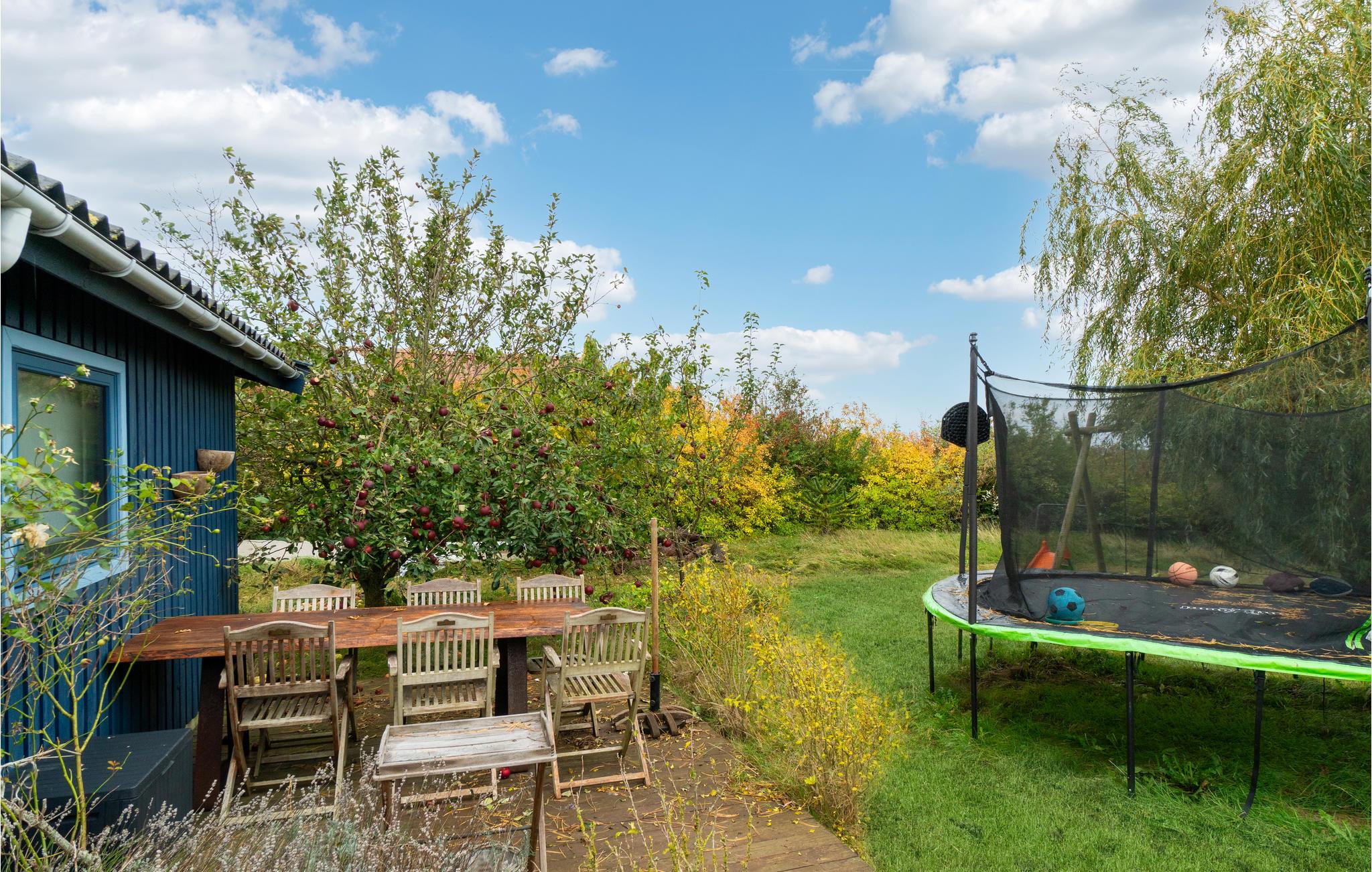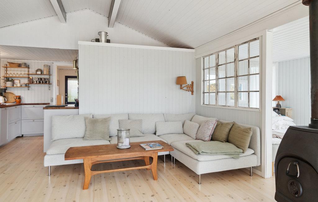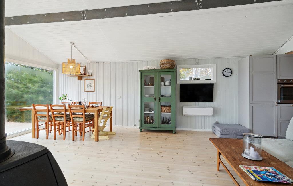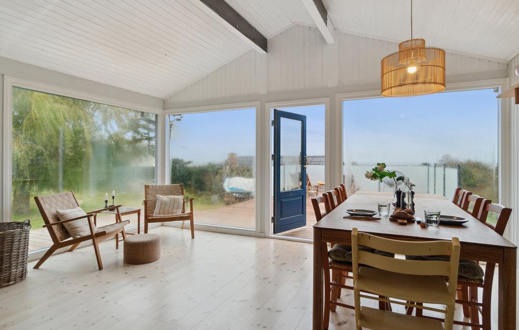 Velkommen til! Dette indbydende feriehus tilbyder med sit anneks god plads til en ferie med jeres store familie. De lyse trævægge og store vinduer skaber en behagelig atmosfære, der forbinder livet indenfor med haven og terrassen. Her kan I føle jer hjemme og nyde udsigten, mens I spiser sammen. I kan tilbringe de solrige timer på den store træterrasse og holde øje med jeres legende børn i haven eller læse en bog på den mindre terrasse under æbletræet. Herfra kan I nå stranden med badebroer og gode fiskemuligheder til fods. Der er også flere skove i nærheden.