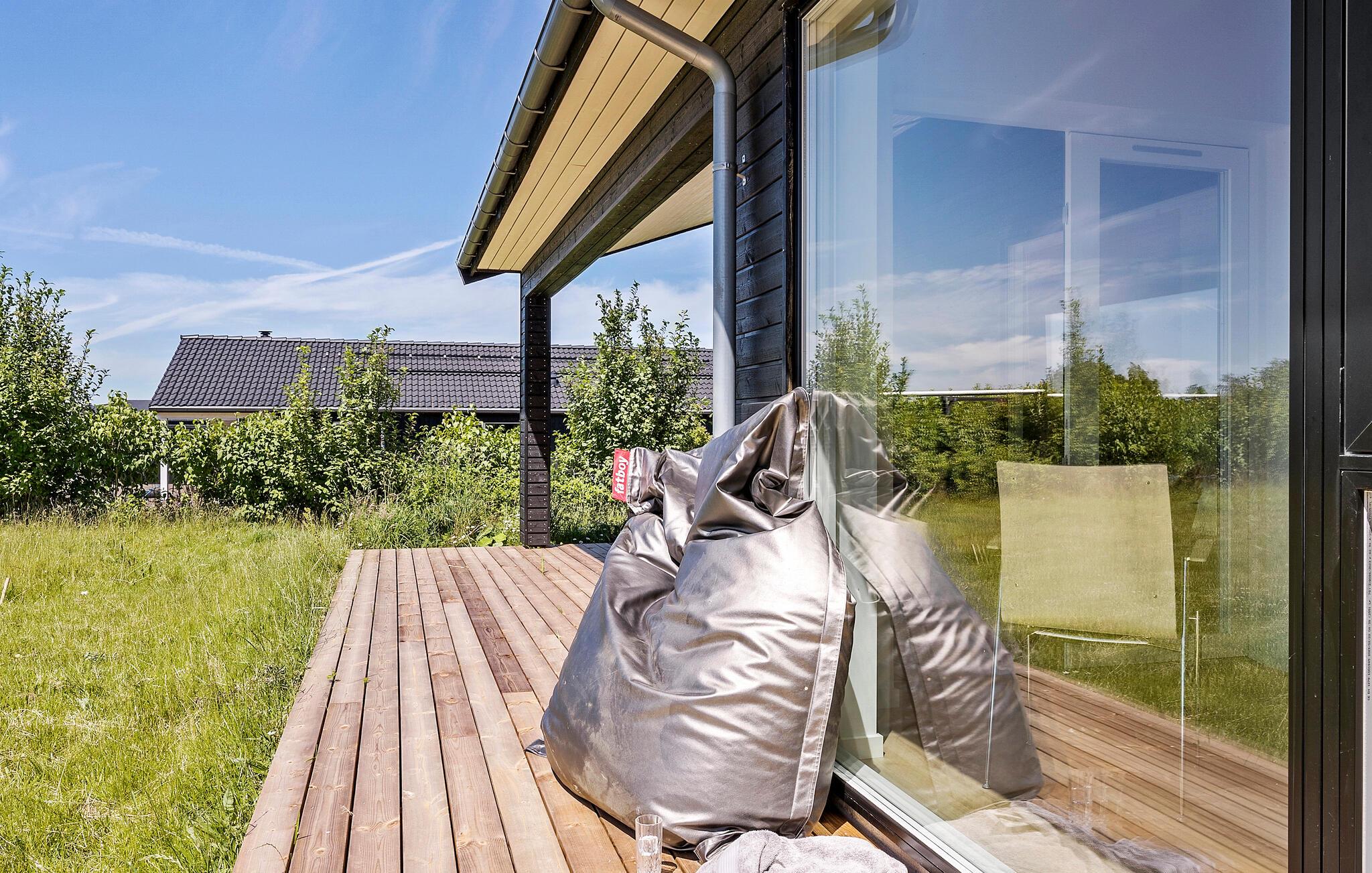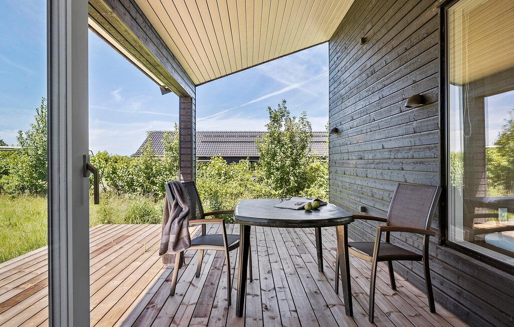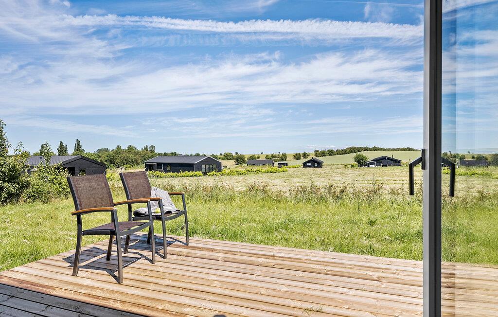Glæd jer til et komfortabelt ophold i dette moderne træhus med en skøn udsigt over marker og enge.