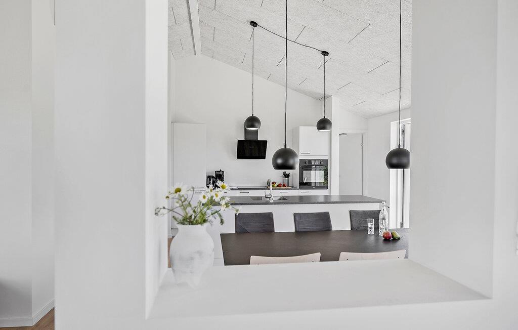 Tag familien under armen og rejs til Vestsjælland, hvor I i grønne omgivelser nær Musholm Bugt finder denne perle af et feriehus. Indvendigt emmer det af kvalitet og stilsikre valg over hele linjen. Udsigten over de åbne vidder er mageløs og kan nydes gennem de mange vinduespartier, der samtidig giver lækre lysindfald til det åbne køkken-alrum. Køkkenet er moderne og veludstyret, så tag jer blot god tid til at kræse om livretterne, inden I runder af med en hyggelig filmaften i stuen.