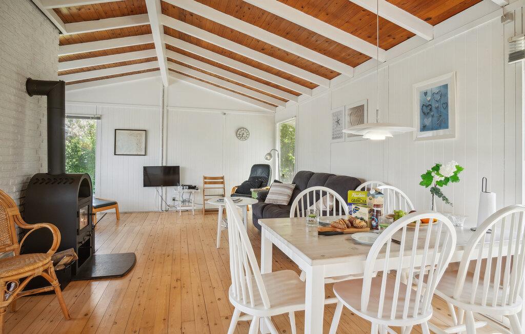 Her vil I med det samme føle jer hjemme. Huset byder indenfor med enkel komfort og inviterer jer til at tilbringe årets smukkeste uger her. Nyd timerne sammen med spil ved spisebordet eller en filmaften i nærheden af den hyggelige brændeovn. Gå fra stuen ud på terrassen, som bliver jeres anden stue i sommermånederne. Sid i solen eller nyd skyggen på den overdækkede terrasse. Om aftenen kan I grille og se jeres børn tumle på græsplænen. Pak strandtasken og fiskeudstyret og fang jeres aftensmad fra kysten. Langs stranden er der opsat badebroer, hvor man kan bade, fiske og solbade.