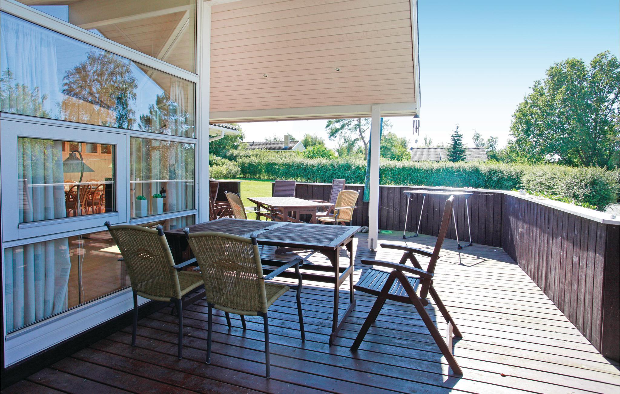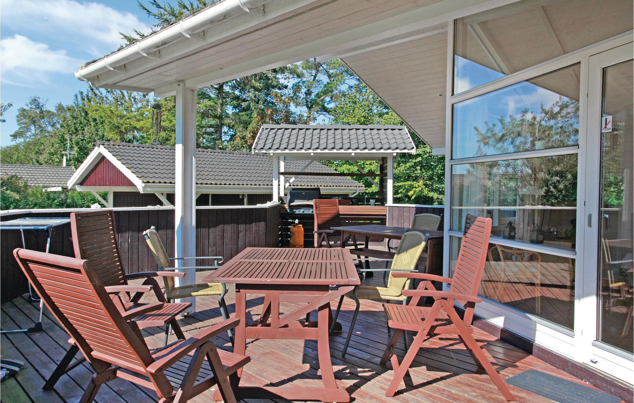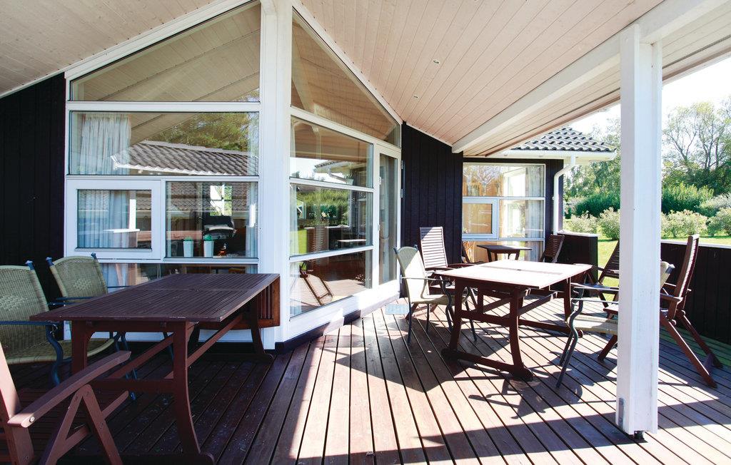 Flot og veludstyret feriehus tæt på Stillinge Strand med overdækket terrasse og udendørs køkken i naturskønne omgivelser.