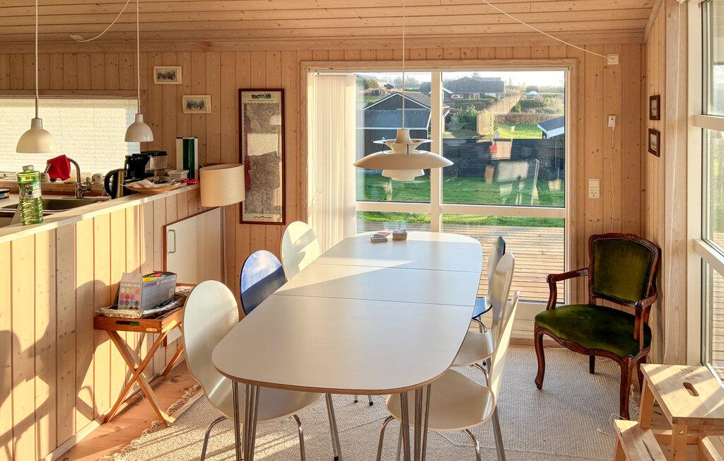 Dette komfortable feriehus er ideelt til at sætte den travle hverdag på pause med familien og fylde nogle feriedage med dejlige aktiviteter. Nyd dagens måltider i den lyse spisestue med udsigt over den grønne have, sæt jer med et brætspil eller fordyb jer i en god bog, mens den knitrende brændeovn og den gyldne aftensol bidrager til en hyggelig atmosfære.