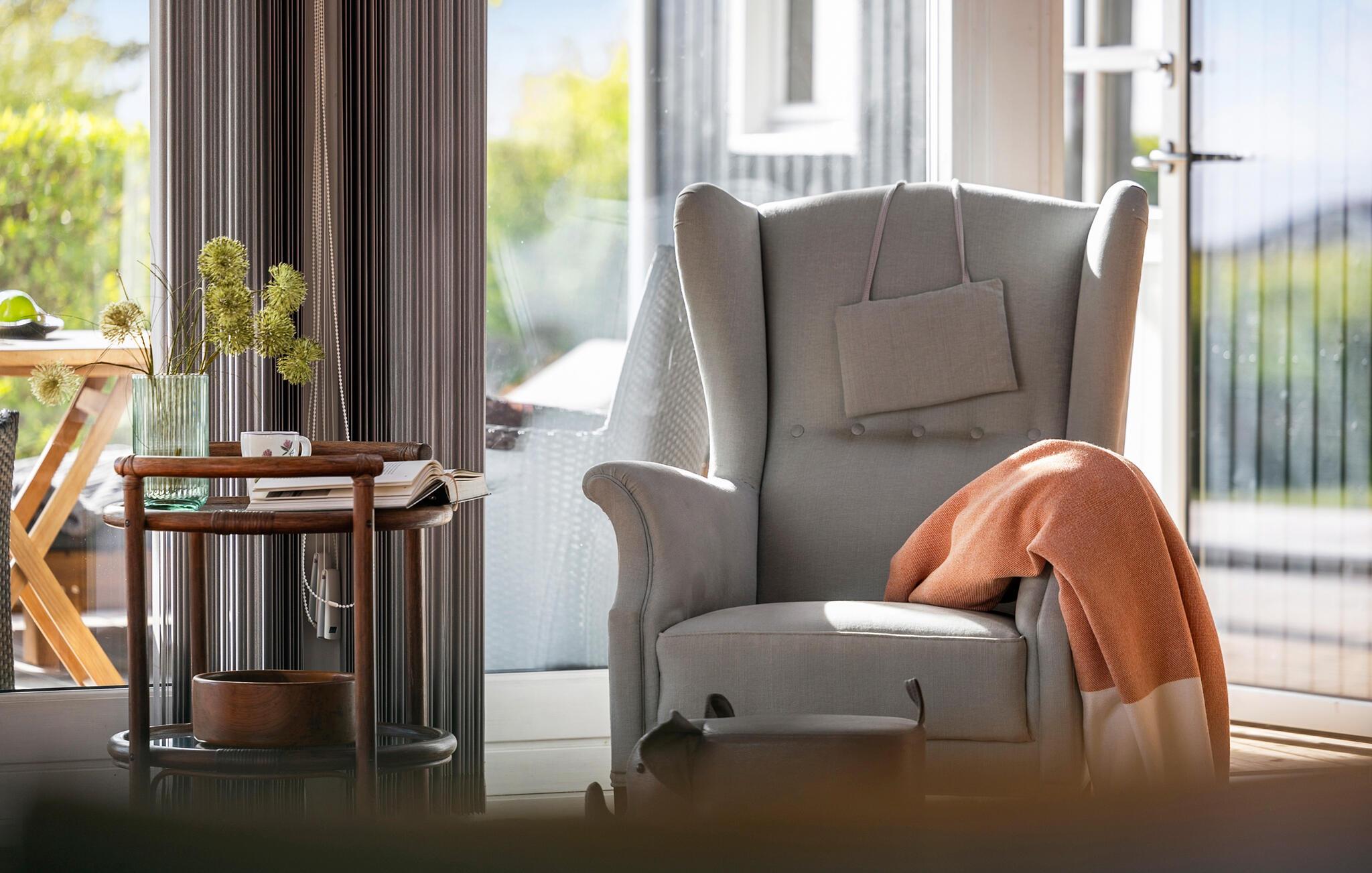 I den glasindkapslede udestue kan I slappe af på liggestolen eller nyde et glas te med udsigt over det grønne, selv på blæsende dage. Lad børnene løbe rundt på den store græsplæne, spille badminton eller fodbold, og tænd op i grillen om aftenen.