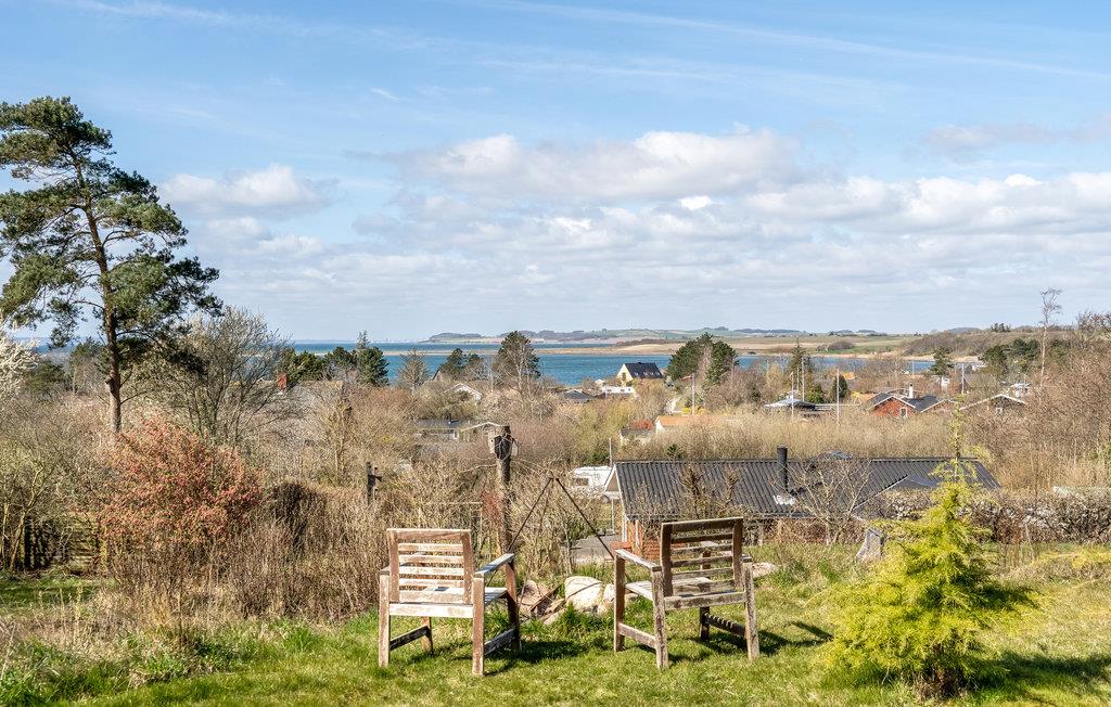 Moderne sommerhus ved Dragsmur Strand med panoramaudsigt over Fuglsø Vig og plads til hele familien.