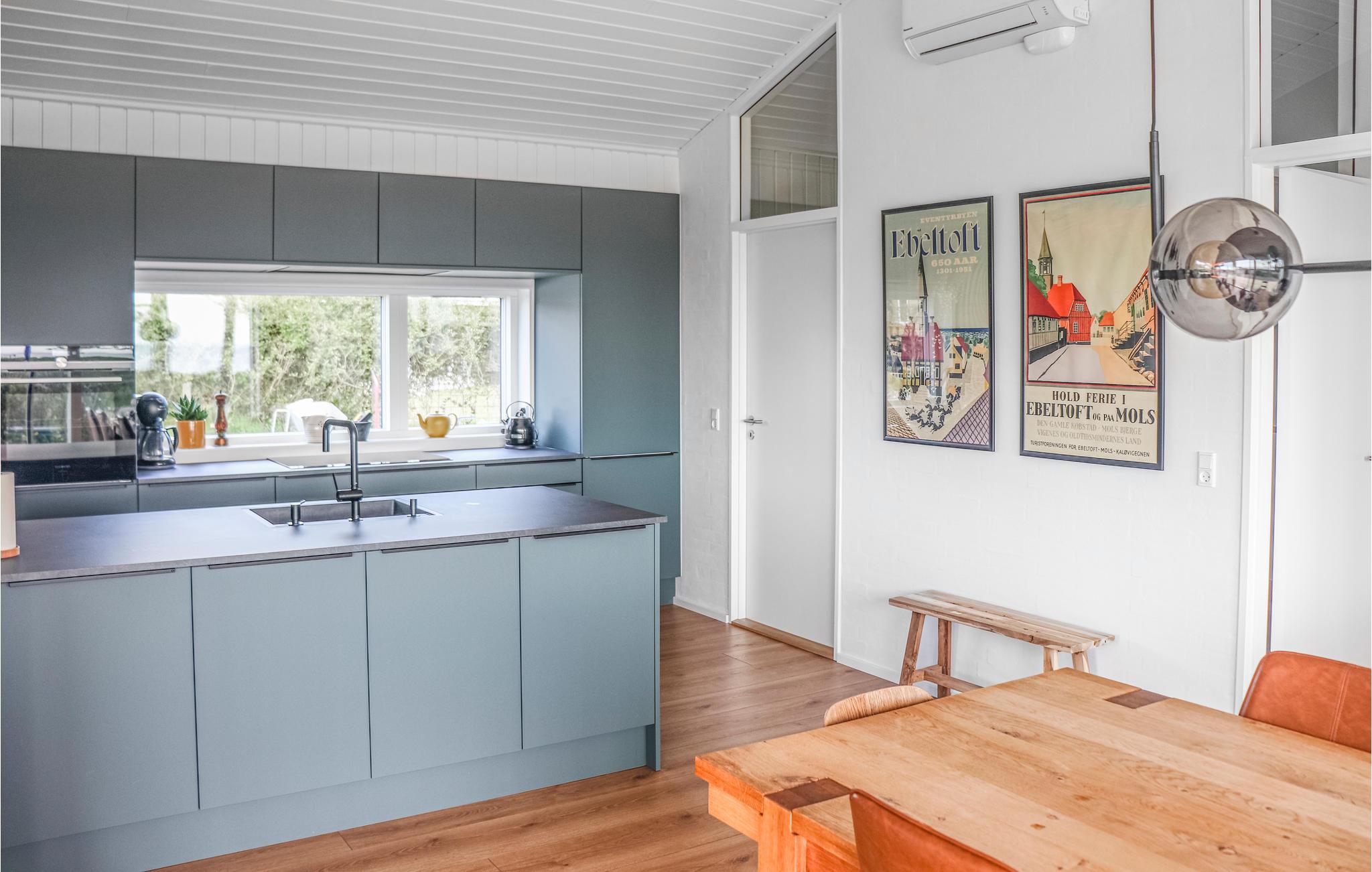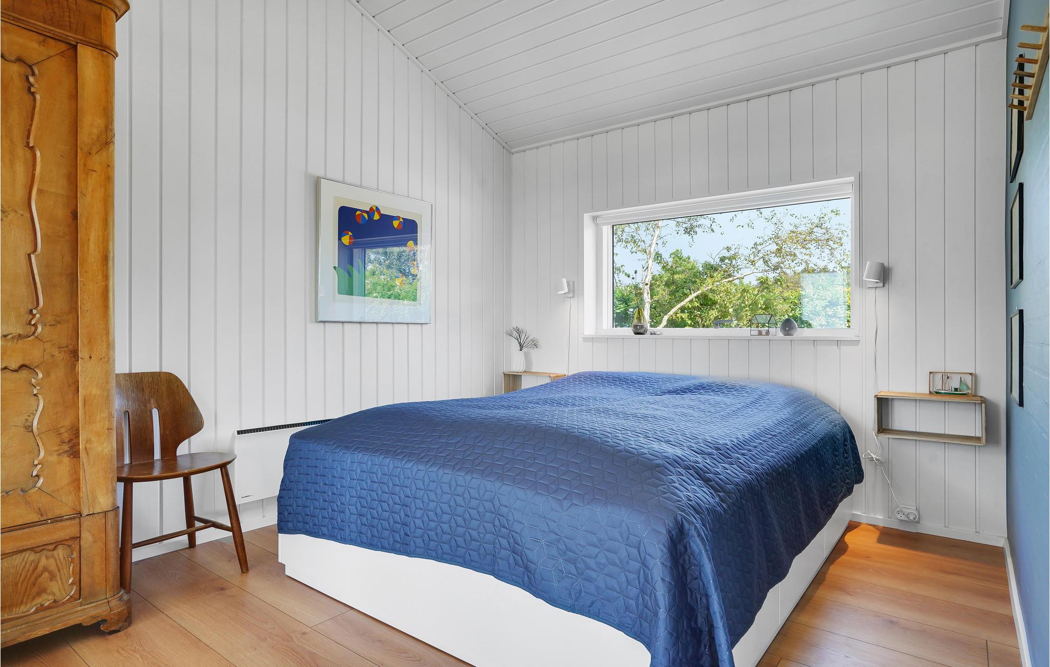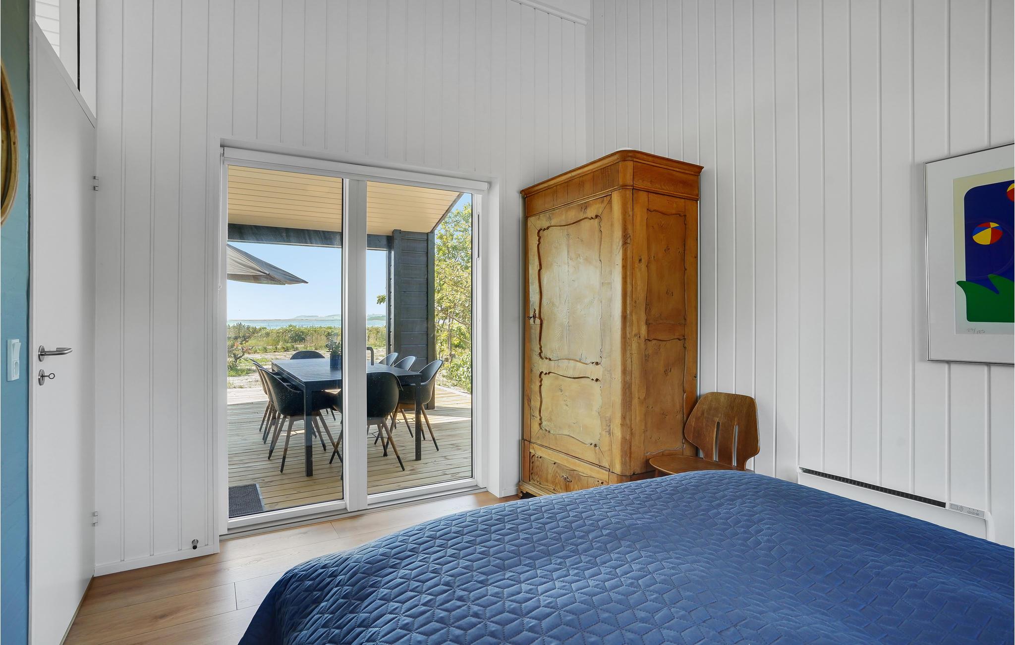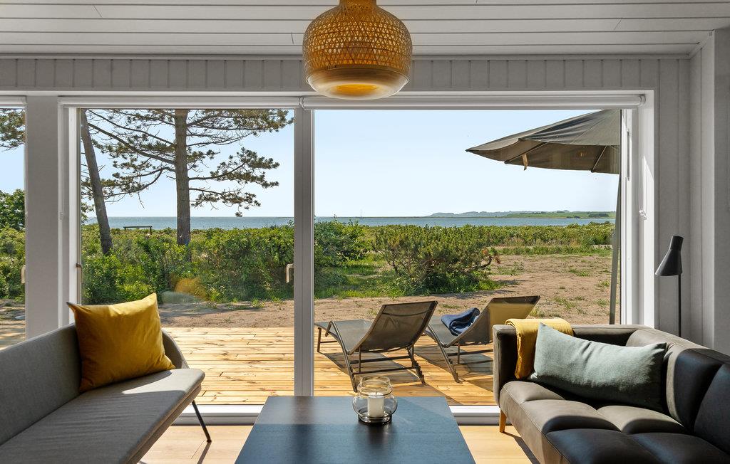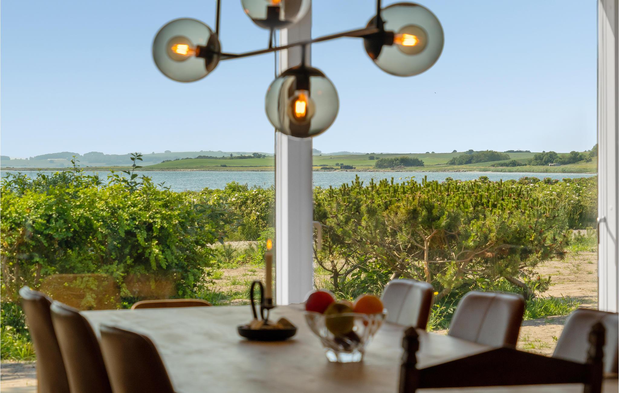 Fra dette indbydende sommerhus kan I nyde en fantastisk panoramaudsigt til vandet gennem de store vinduer. Både når I sidder i de komfortable sofaer og er samlet omkring måltiderne, kan I nemlig kigge direkte ud til vigen 50 meter længere ude. Huset er indrettet til, at I kan bo her på alle tider af året. En Nespresso-maskine gør det muligt at brygge lækker kvalitetskaffe på ferien - husk selv at medbringe kapsler.