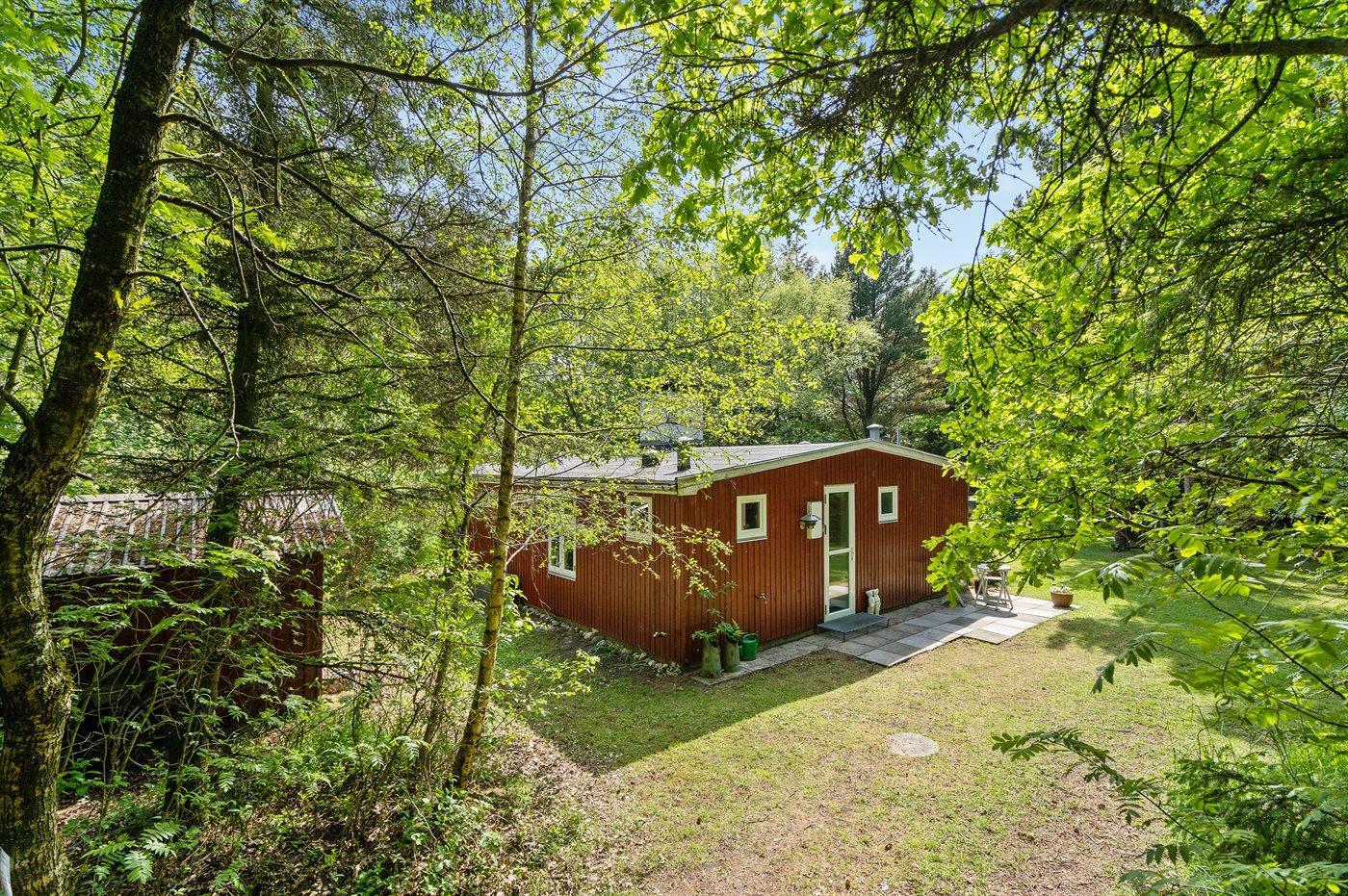 Ferieboligen er beliggende på en 3000 m² stor naturgrund. Der er 2000 m til fjorden. Nærmeste forretning er beliggende i en afstand af 4000 m. Desuden er der 20 m² overdækket terrasse. Der er redskabsrum. Gynge. Bålsted. På lune aftener sørger en udendørs pejs for hyggelig stemning. Grill til rådighed. Parkering ved ferieboligen.