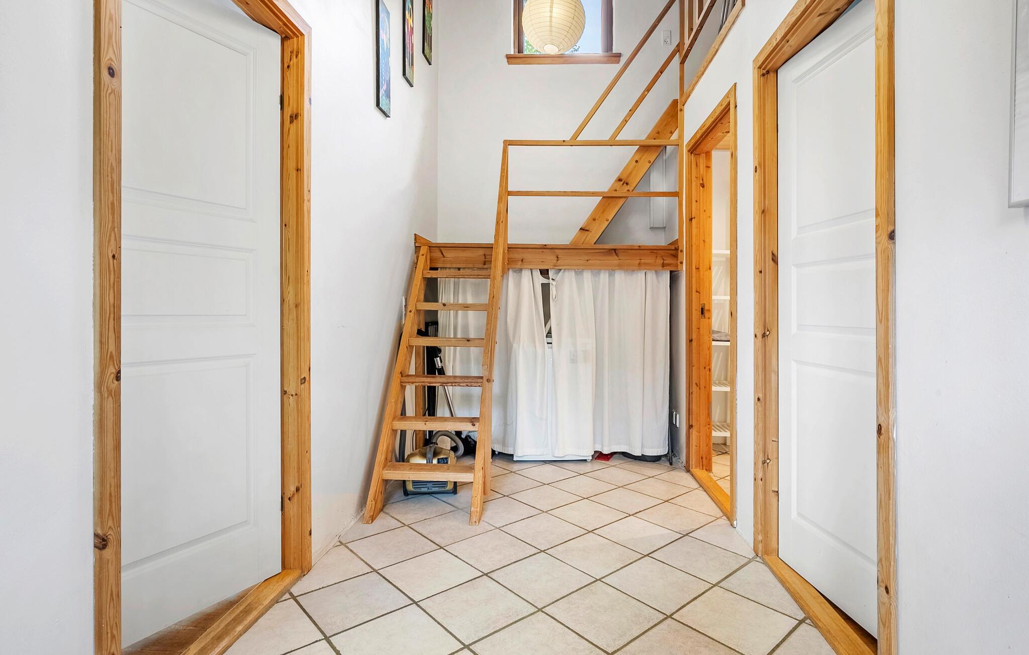 Højt placeret og med en skøn udsigt ud over Kolding Fjord ud til Lillebælt, ligger dette sommerhus af træ kun 40 m fra stranden. Huset ligger på en dejlig stor naturgrund med flere udsigtspunkter på en skråning og med adgang via trapper. Indendørs er der en stue i praktisk åben forbindelse med køkkenet, hvorfra I også kan nyde den betagende udsigt. Sovepladserne er fordelt i et godt soveværelse med dobbeltseng, på hemsen med adgang ad en trappe er der endnu en dobbeltseng og i annekset, med adgang udefra er en sovesofa. Et rigtigt dejligt sommerhus i et naturskønt og fredeligt område hvor der er gode fiskemuligheder, nær Kolding og mange seværdigheder.