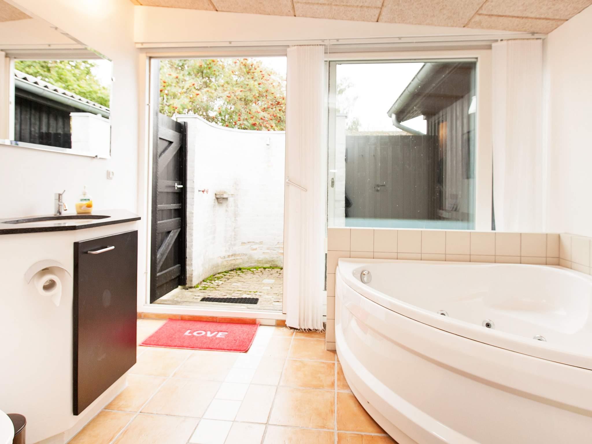 Komfortabelt sommerhus med stor terrasse og spabad nær Danmarks bedste strand.