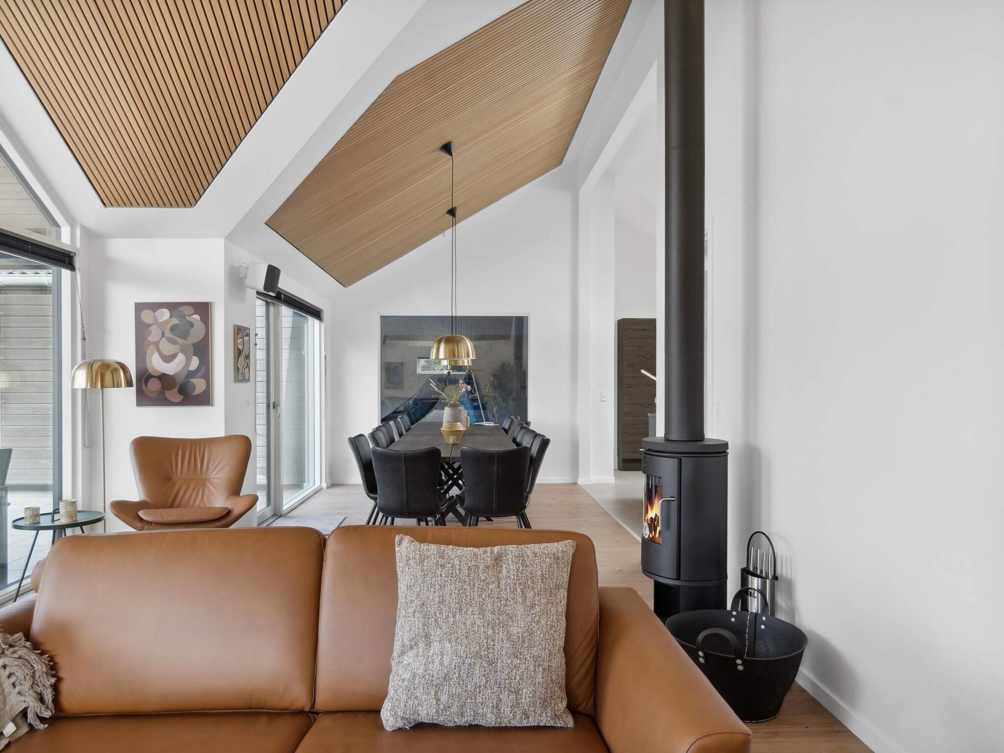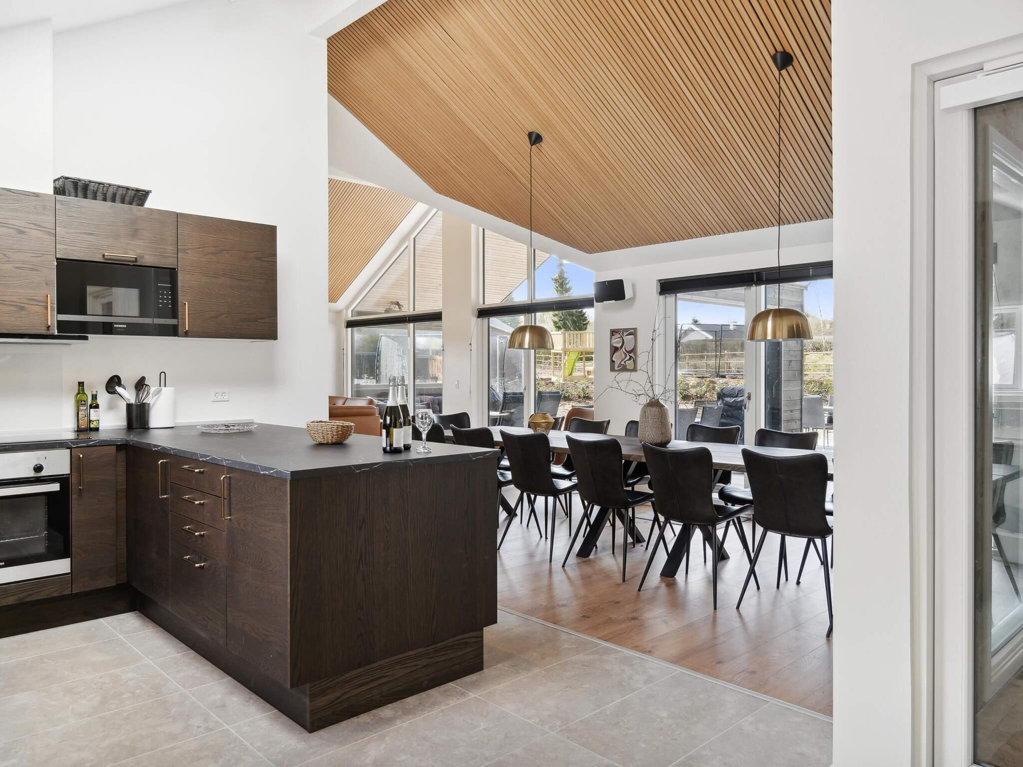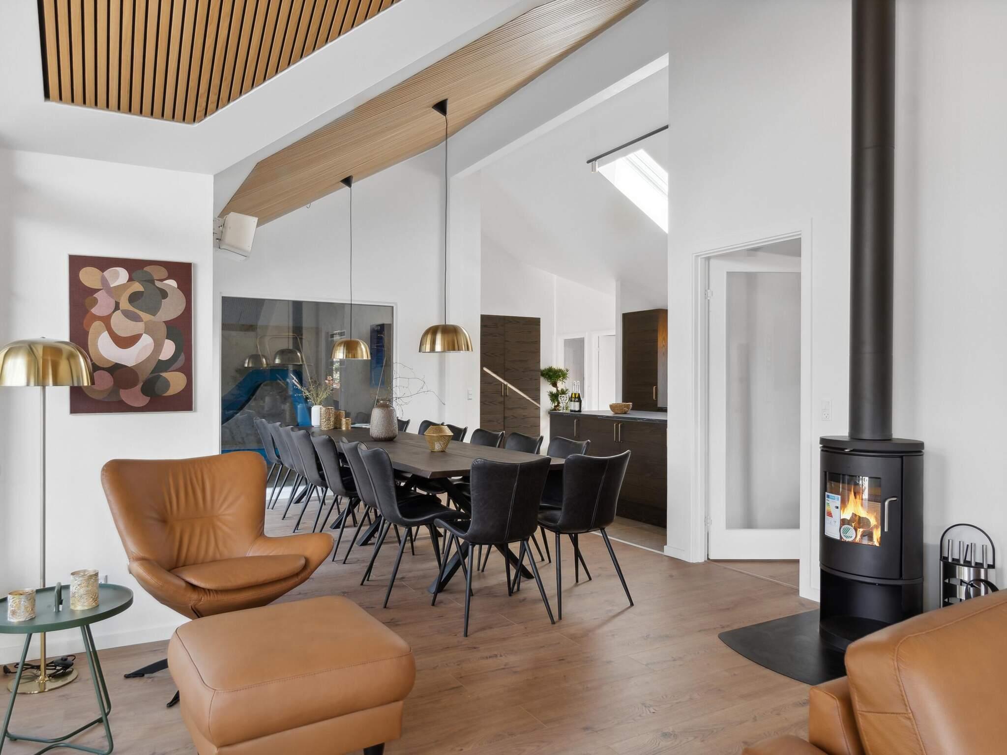 I dette feriehus kan du opfylde ethvert ønske om wellness og afslapning i luksuriøse omgivelser. Her har du dit helt eget wellnessområde. Du kan nyde en stille stund under stjernerne i det udendørs spabad eller varme dig i den udendørs sauna. Vil du have noget lidt mere aktivt, kan du tage en dukkert i den indendørs swimmingpool med rutsjebane og volleyballnet. Ved poolen finder du endnu et spabad med plads til 7-9 personer.
