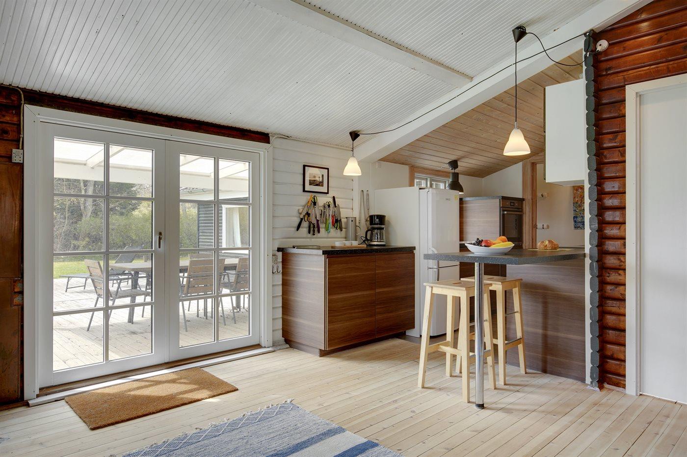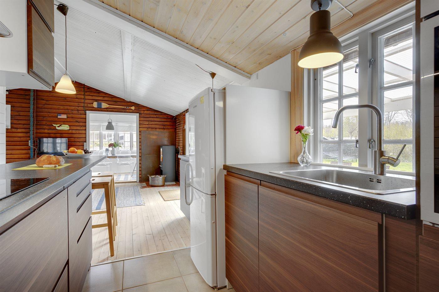 Køkkenet er udstyret med 1 køleskab. Der er 4 keramiske kogeplader, varmluftovn samt opvaskemaskine.