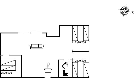 Der er i alt 3 soveværelser. Sovepladserne fordeler sig på: 2 sovepladser i dobbeltseng. 4 sovepladser i enkeltsenge.