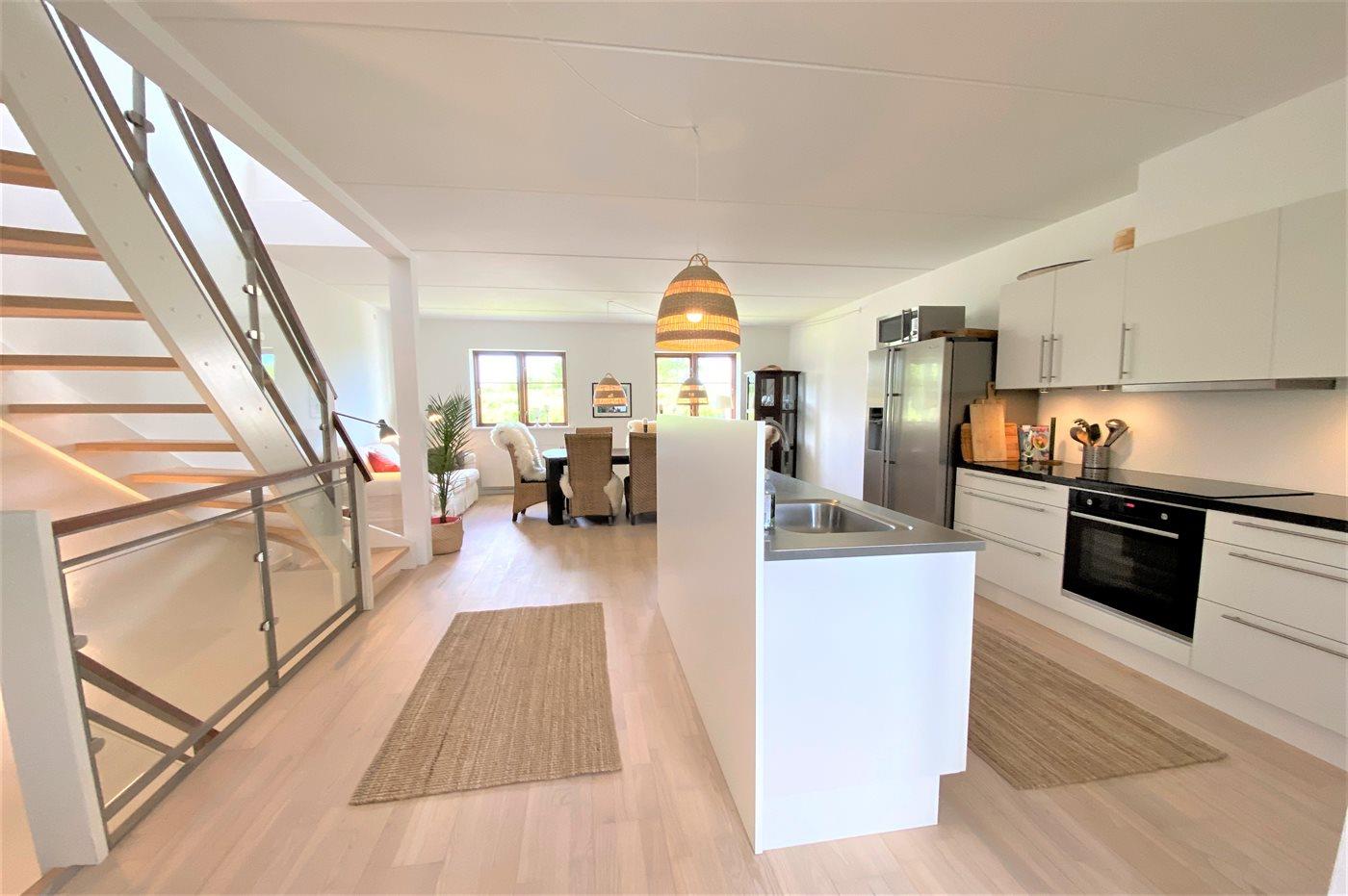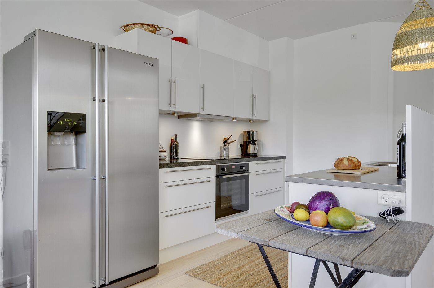 Køkkenet er udstyret med 1 amerikansk køleskab. Der er 4 keramiske kogeplader, varmluftovn, mikrobølgeovn samt opvaskemaskine.