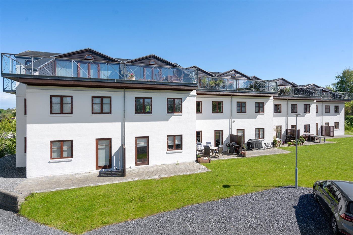 Denne feriebolig er bygget i 3 plan og byder på havudsigt samt masser af komfort fordelt på hele 156 m2. I kan nyde udelivet på den 22 m2 store tagterrasse, på terrassen i stueetagen, hvortil der er adgang via et af soveværelserne eller på den syd-østvendte altan. Ferieboligen byder på et stort køkkenalrum, 2 store badeværelser og en opholdsstue beliggende på 2. sal. Ferieboligen ligger kun 150 m fra den børnevenlige sandstrand Dronningmølle Strand. Desuden findes der café, restaurant og indkøbsmuligheder indenfor en radius af kun 500 m.