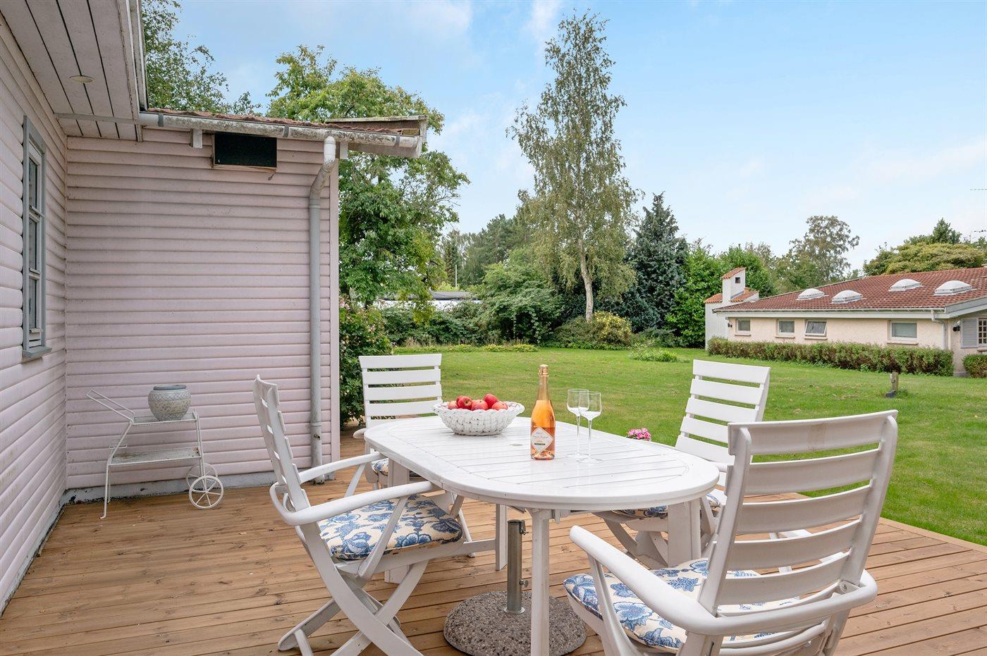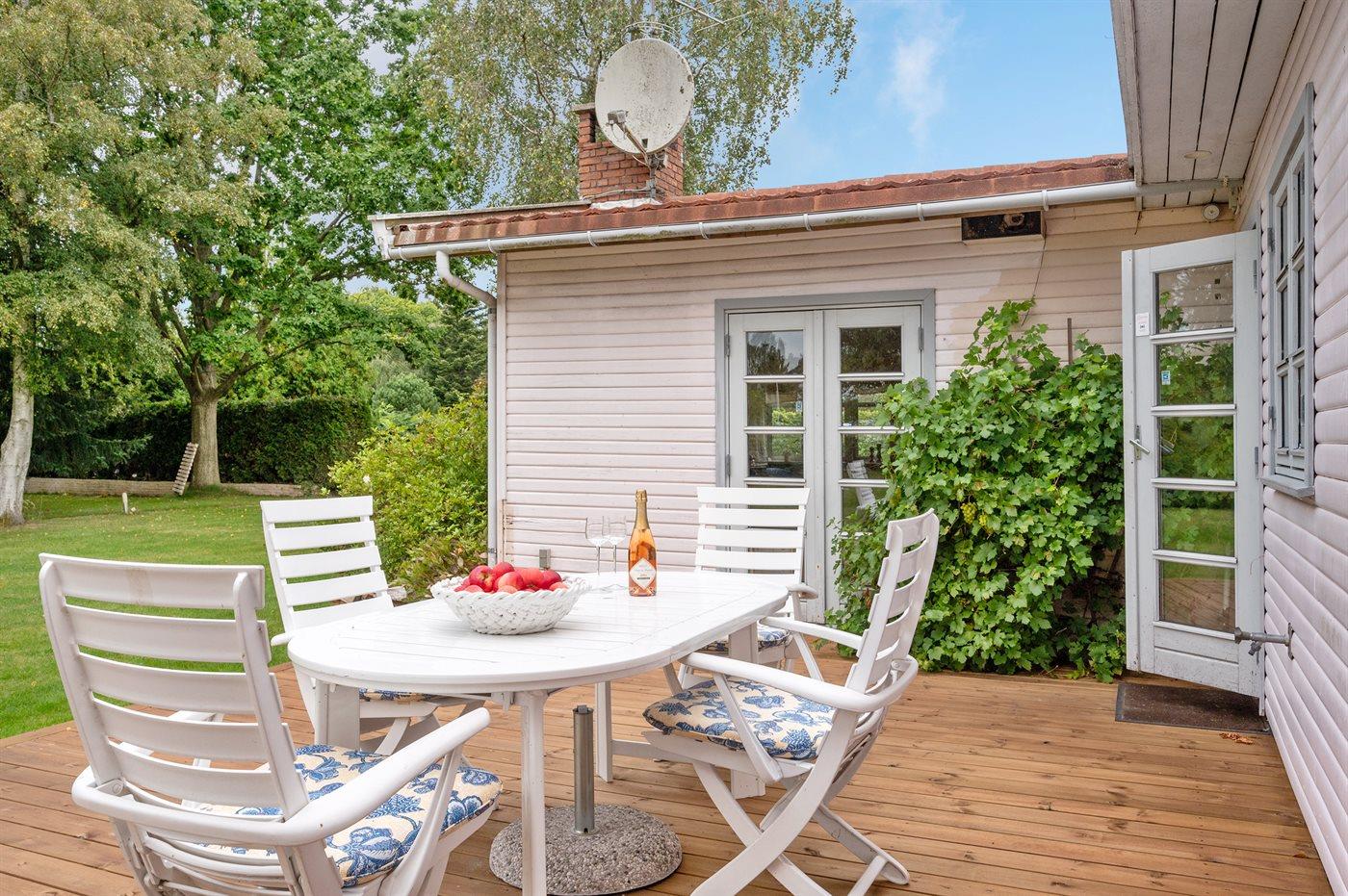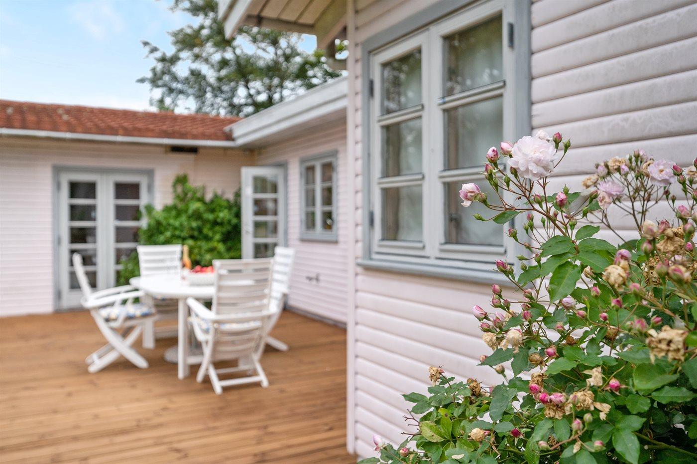 Nyd sommeren på den gode terrasse eller i skyggen af et af de store træer, som giver huset en helt sydlandsk stemning. Huset ligger tæt på skønne sandstrande, indkøbsmuligheder, café og togstation.