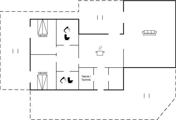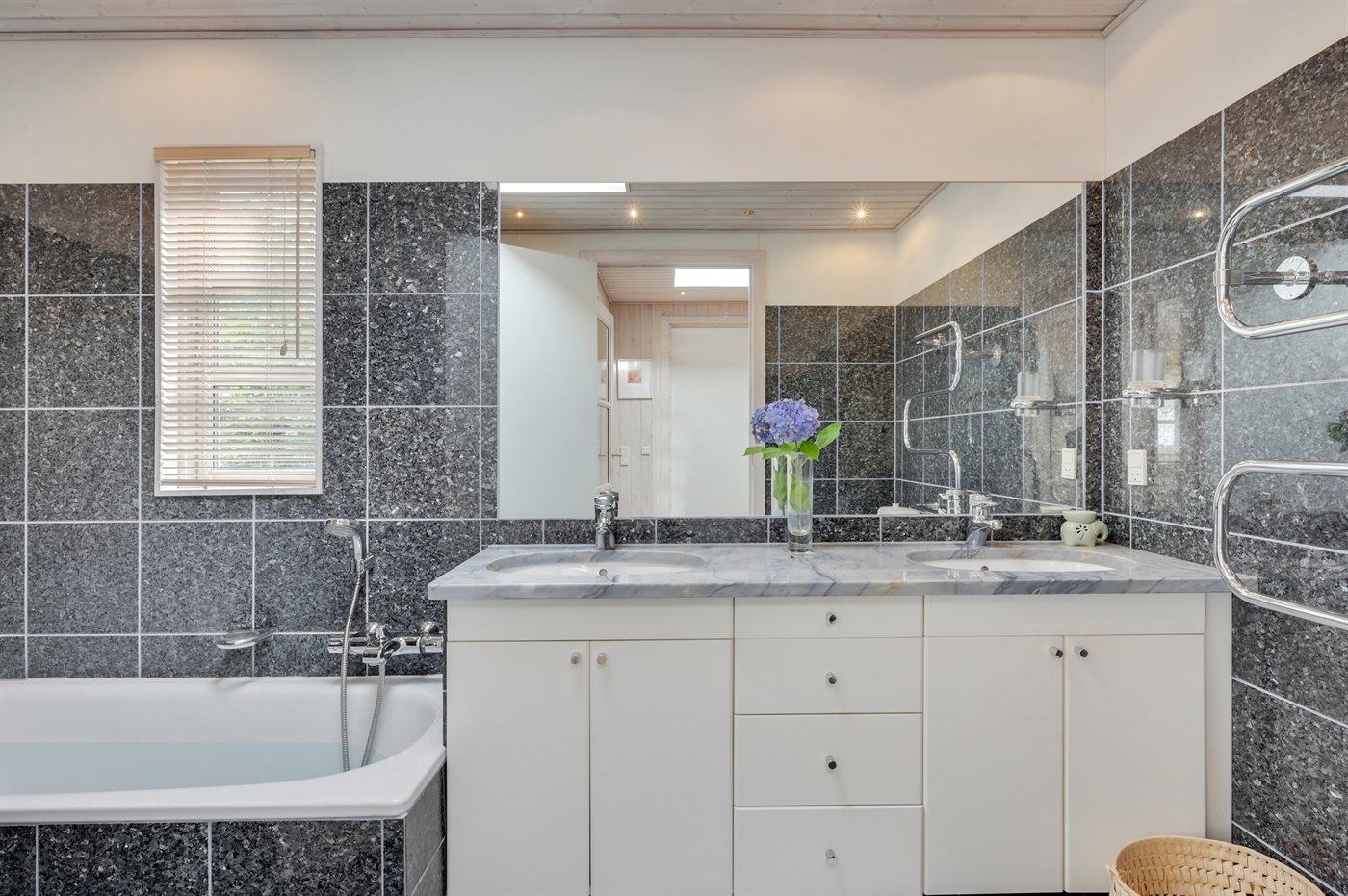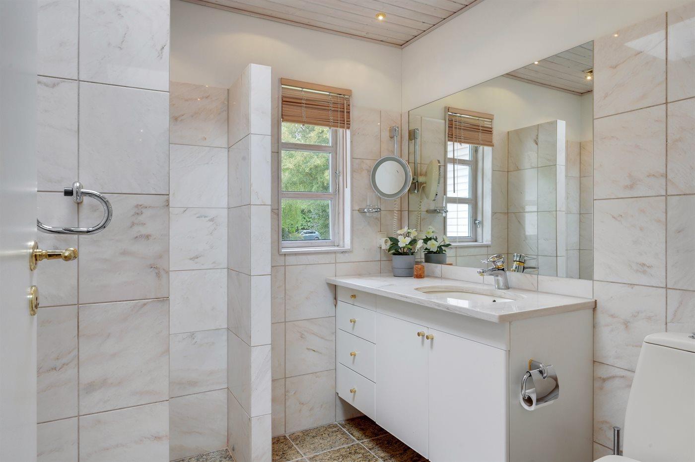 Der er 2 badeværelser med bruseniche og 2 toiletter. Der er gulvvarme på 2 badeværelser.. Badekar.