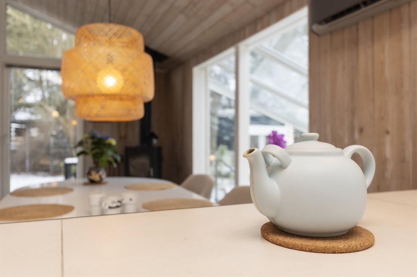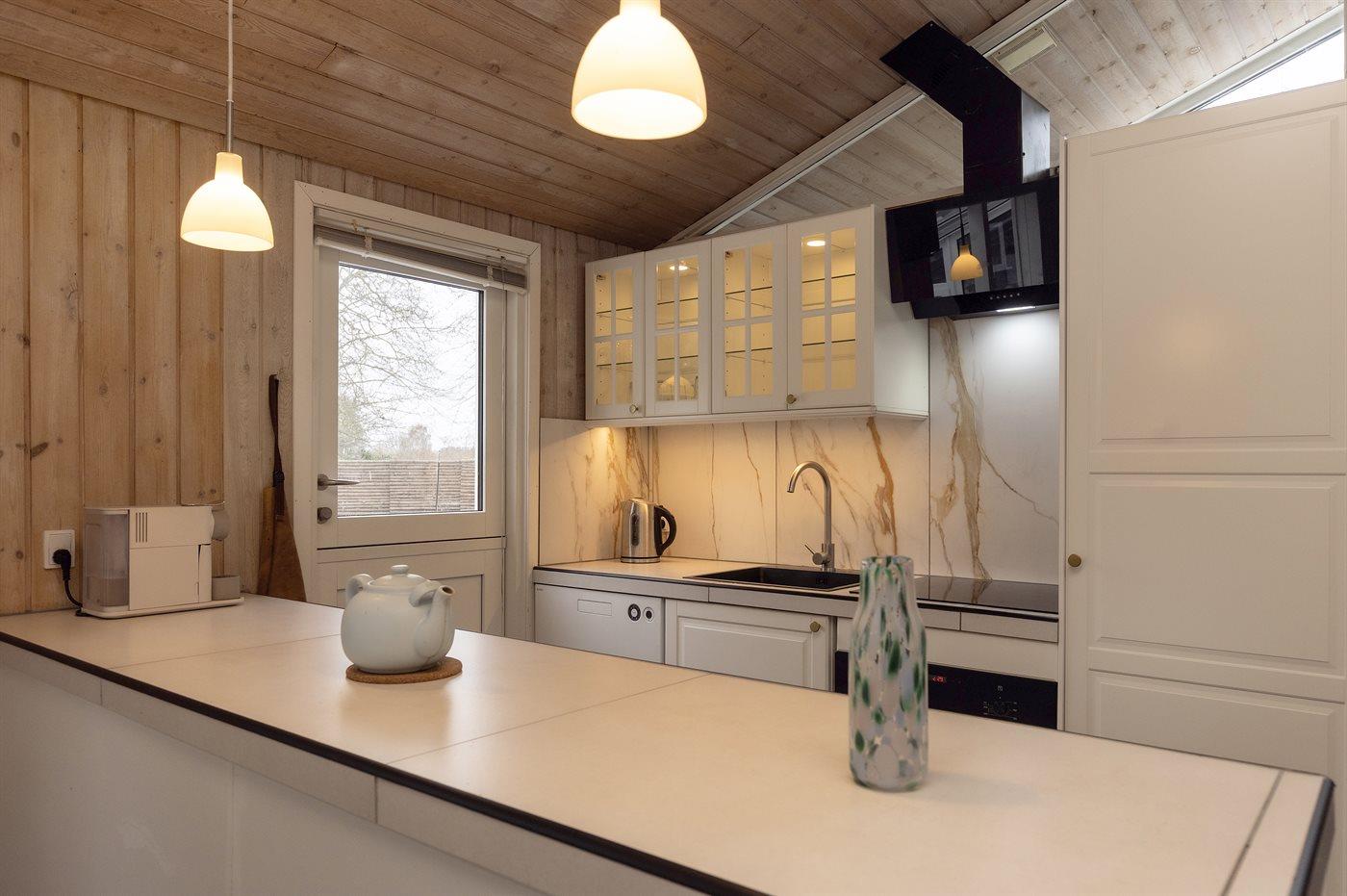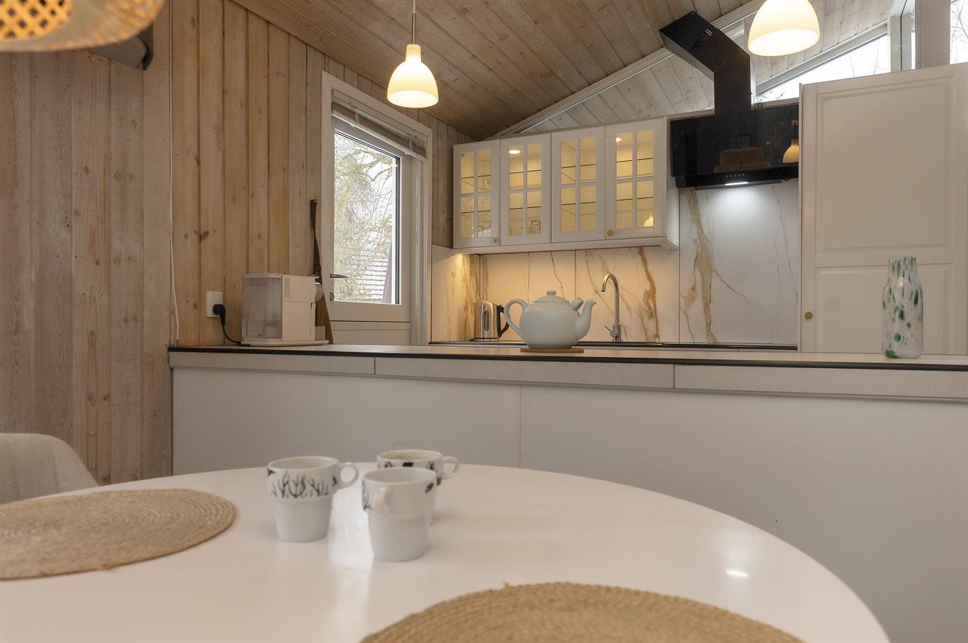 Køkkenet er udstyret med 1 køleskab. Der er 4 keramiske kogeplader, varmluftovn, mikrobølgeovn samt opvaskemaskine.