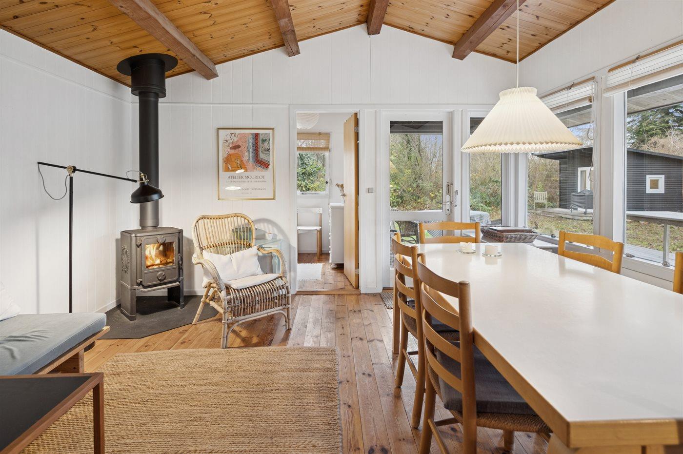 Huset emmer af klassisk sommerhusstemning med brændeovn, trævægge og hyggelige rum, hvor man naturligt samles. Det nybyggede anneks giver ekstra komfort og fleksibilitet – perfekt som et fredeligt soveområde til teenagere eller bedsteforældre.