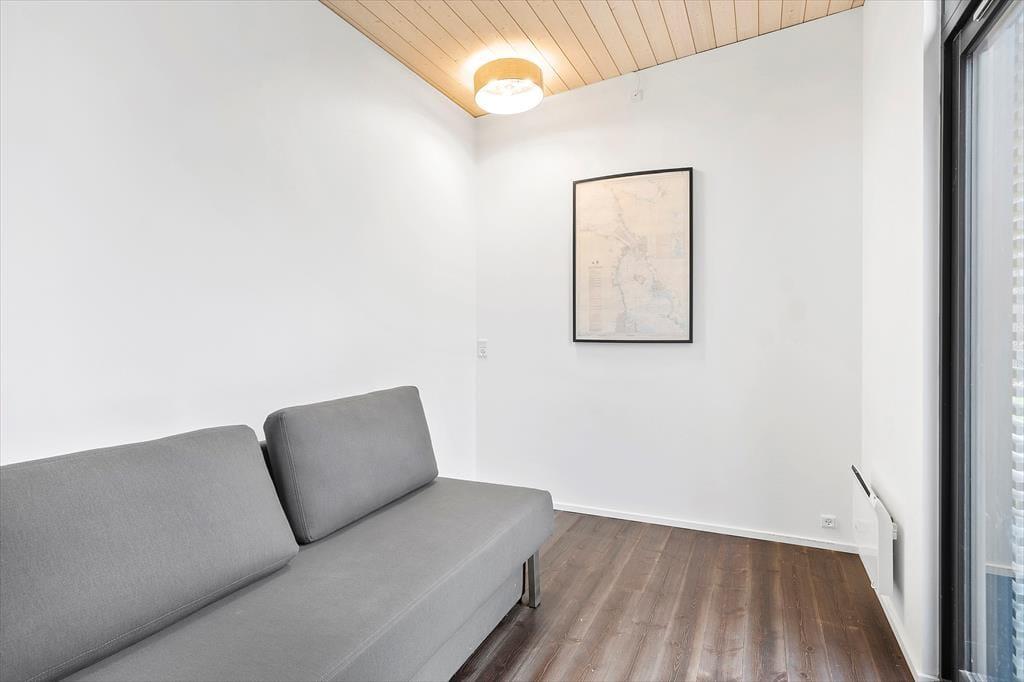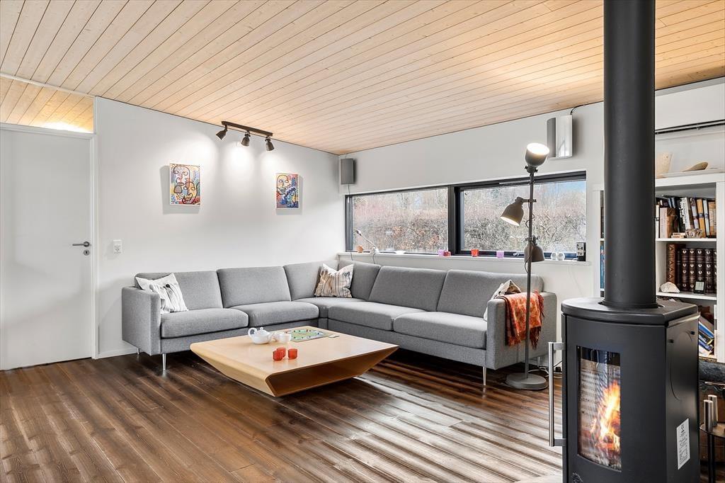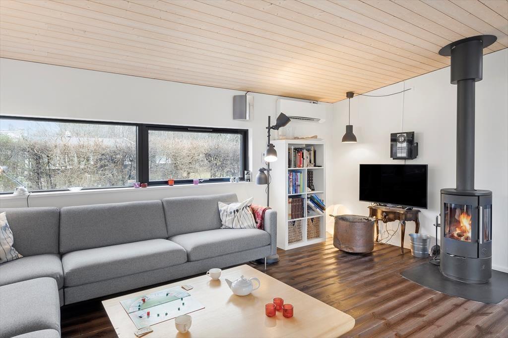 Når du træder indenfor, bliver du mødt af et åbent, rummeligt og lyst sommerhus, hvor hver detalje er nøje udvalgt for at skabe en moderne og indbydende atmosfære. Stuen er husets naturlige samlingspunkt, indrettet med komfortable møbler og en hyggelig brændeovn, der spreder varme på kølige aftener. Fra stuen er der direkte udgang til den store terrasse, hvor inde- og udeliv smelter sammen.