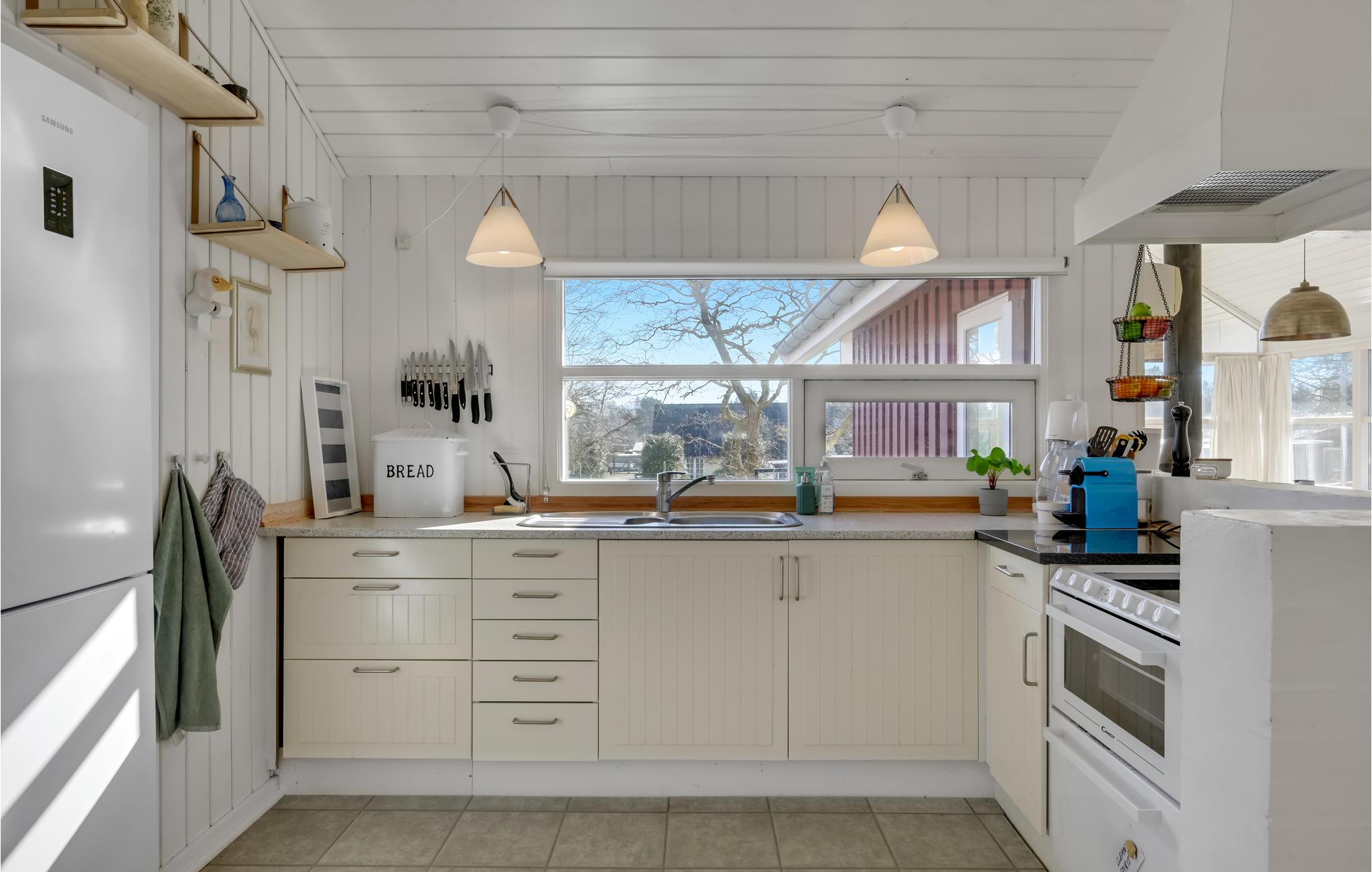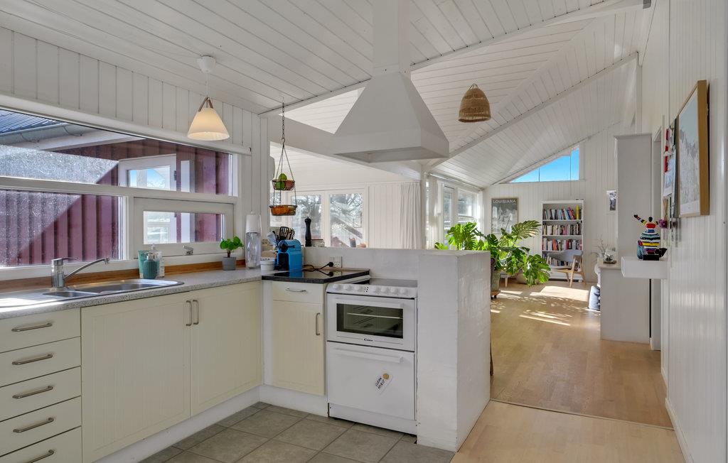 Tag hele familien med til dette store og indbydende feriehus, hvor I straks vil føle jer hjemme. Den beroligende atmosfære inviterer jer til at slappe af og nyde feriestemningen fuldt ud. Stuens store vinduespartier lukker solens stråler ind og giver jer naturligt lys, mens I leger, laver mad, spiser og slapper af. Uanset om I ser en film eller læser en bog, så læg fødderne op og nyd varmen fra brændeovnen på kølige dage.
