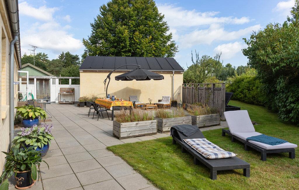 Udnyt det store udendørsareal til afslappende timer i den friske luft. Nyd jeres morgenmad på den møblerede terrasse, eller sol jer på en af liggestolene. Den store have med velplejede græsplæner og blomstrende planter byder på rigelig plads til leg, afslapning eller grillhygge.
