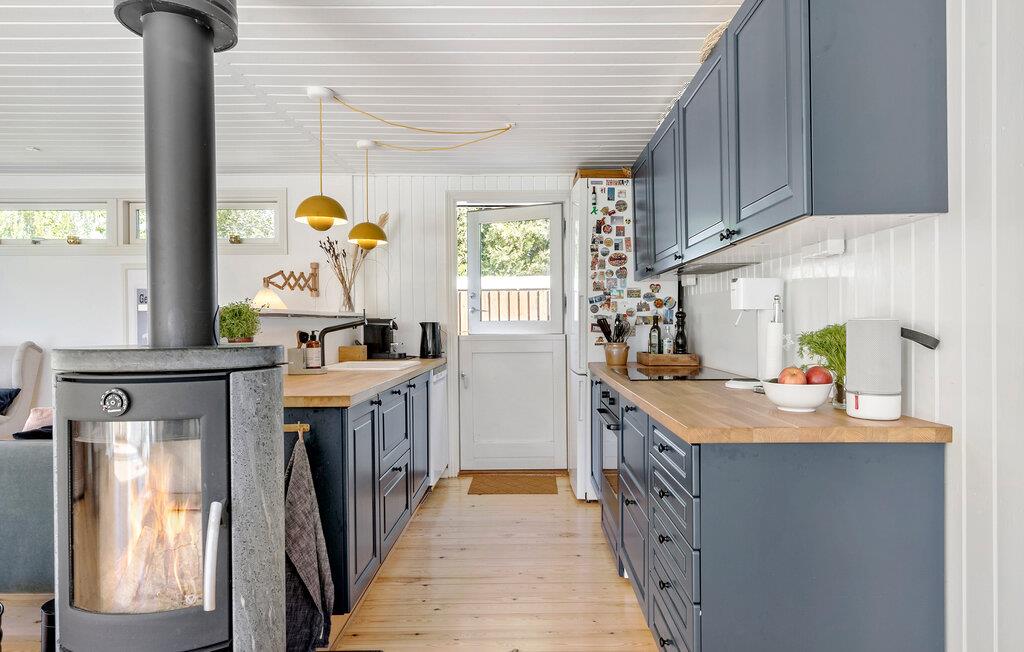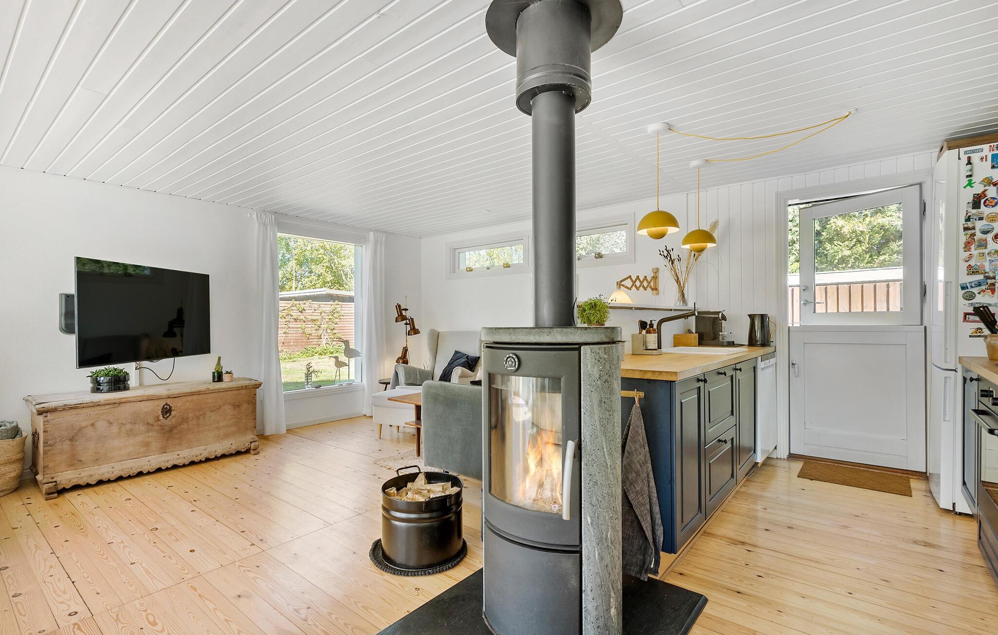 Velkommen til Dronningmølle og dette dejlige træhus, der ligger i gåafstand fra stranden og danner rammen om en dejlig ferie med familien. Udover hovedhuset er der sovepladser i annekset, så I kan rejse som en større flok og stadig nyde en god nattesøvn og lidt privatliv. Huset er flot indrettet med lyse træpaneler, åbent boligkoncept og lækre lysindfald gennem de store vinduespartier, der samtidig giver udsigt til haven. Hvis vejret bider lidt, er det bare at tænde op i brændeovnen, der giver varme og et knitrende lydtapet til madlavningen i det veludstyrede køkken og en god film i sofaen til langt ud på aftenen.