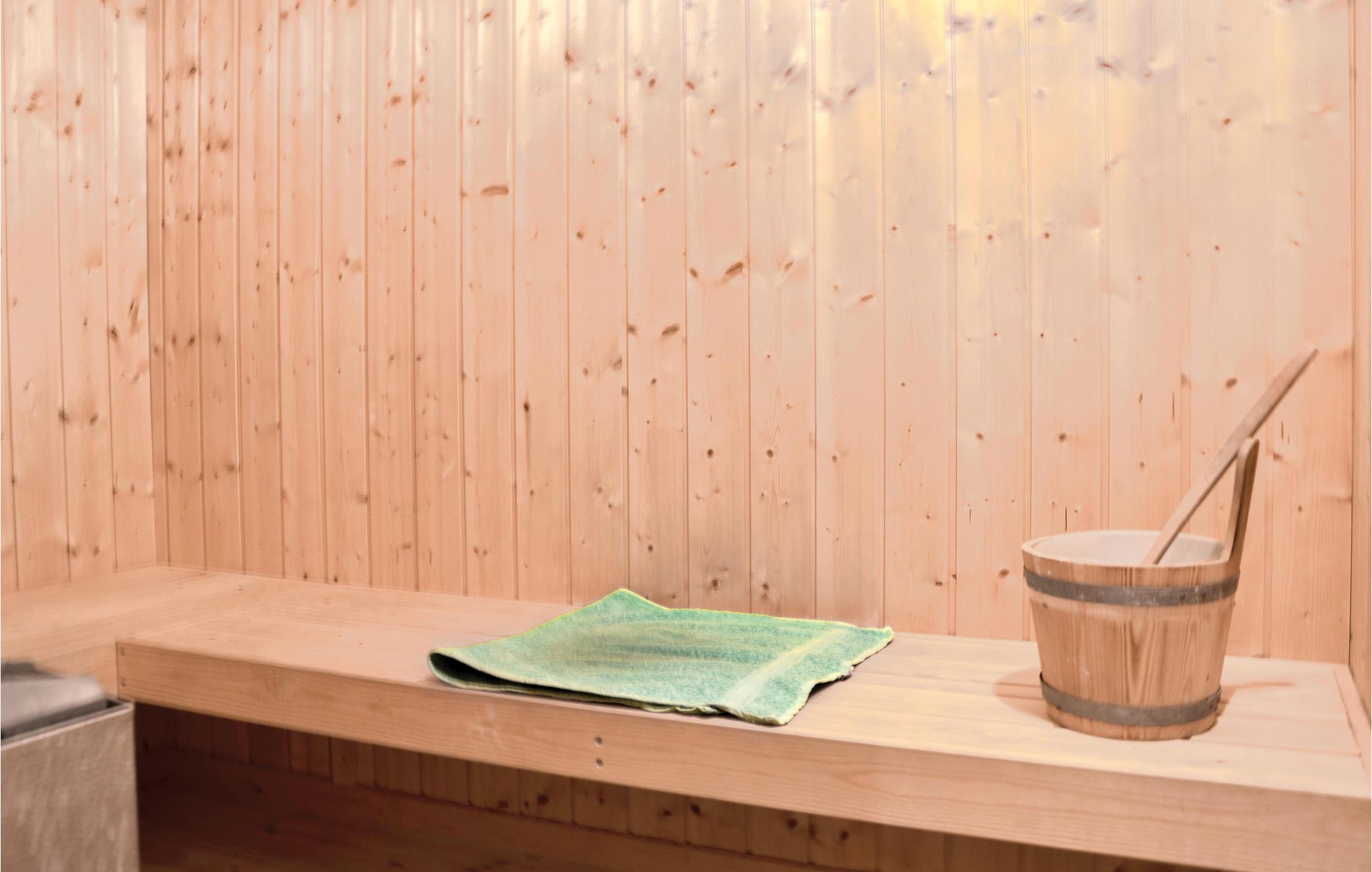 Husets sovepladser fordeler sig på fire soveværelser, tre med dobbeltsenge og et med køjesenge. Der er to badeværelser med gulvvarme, hvoraf det ene har et 2-personers spabad og adgang til den dejlige sauna. Endvidere er der gratis internetforbindelse (egen computer skal medbringes) samt vaskemaskine og tørretumbler. Til de mindste feriegæster findes en sandkasse og gynge. Ved huset findes en carport med plads til to biler.