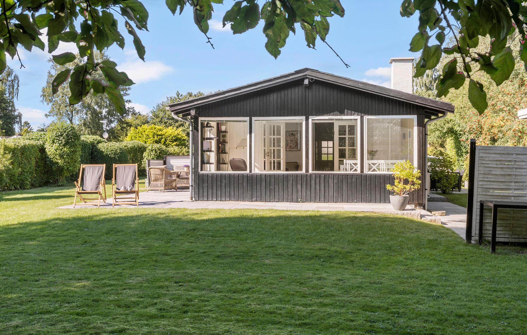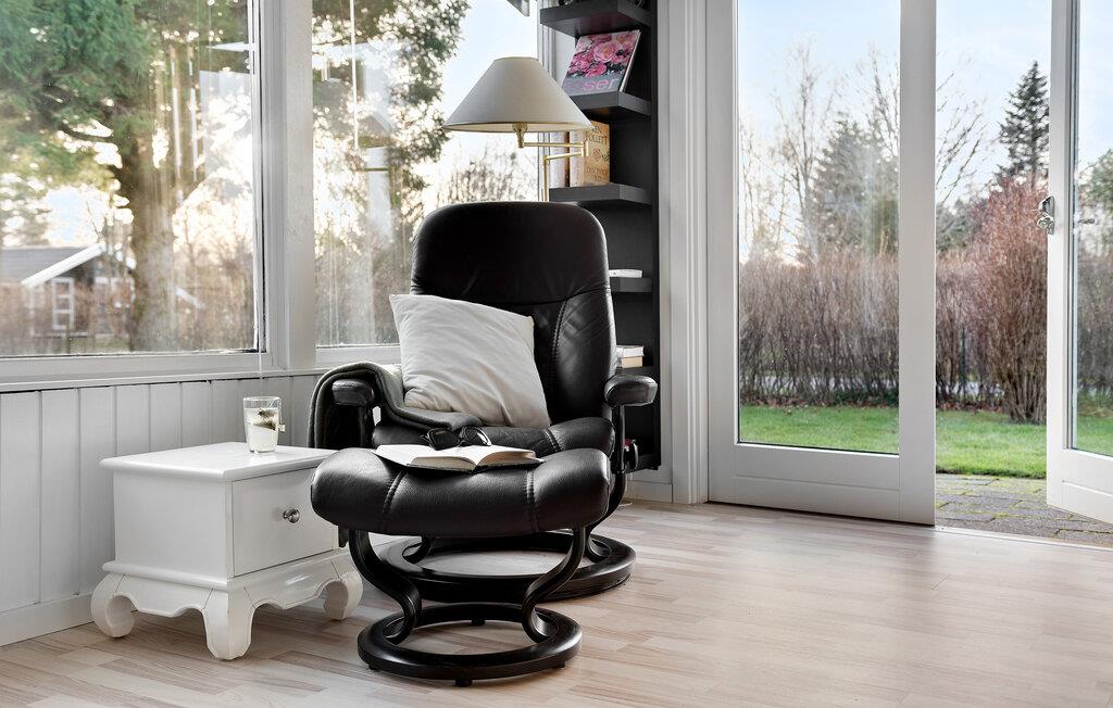 Tag familien under armen og lad turen gå til smukke Nordsjælland, hvor der er lagt op til en vidunderlig ferie i dette flotte hus. Indretningen fremstår yderst elegant i både lyse og mørkere farver og med en vellykket åben grundplan, der forener køkken og stue i ét rum, som lyses dejligt op af naturligt lys gennem de store vinduer. På de køligere dage kan I fyre op i brændeovnen og læse en bog eller se en god film i en virkelig hyggelig atmosfære. Udestuen er det ideelle sted til kort- eller brætspil med udsigt ud over haven.