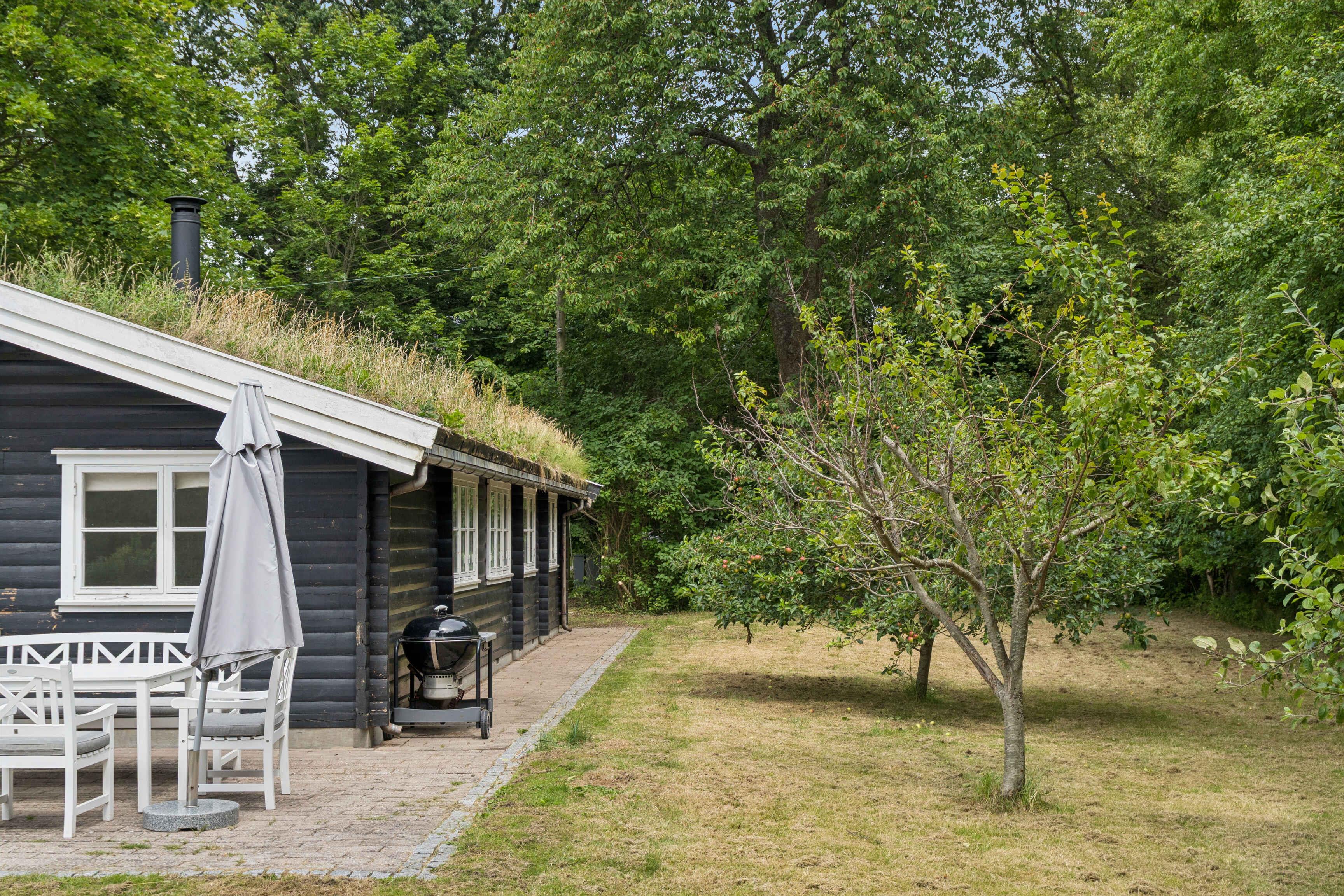 Charmerende sort bjælketræs sommerhus med 3 soveværelser på skøn rolig grund til naturskov udlejes på Hulerødvej i fine Dronningmølle med kun 150 meter til meget privat badestrand. Sommerhuset er skønt indrettet og oser af bjælkehushygge.