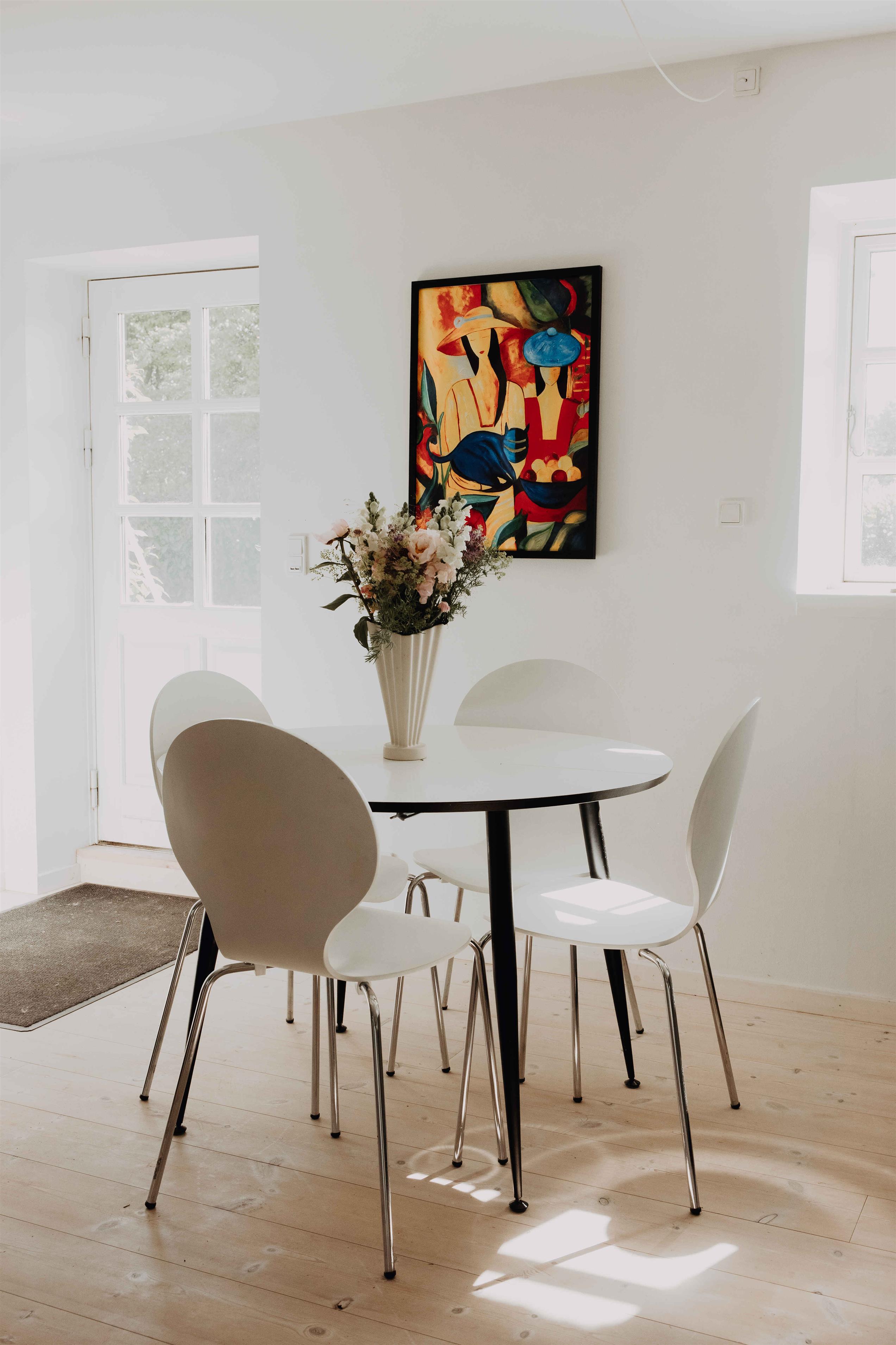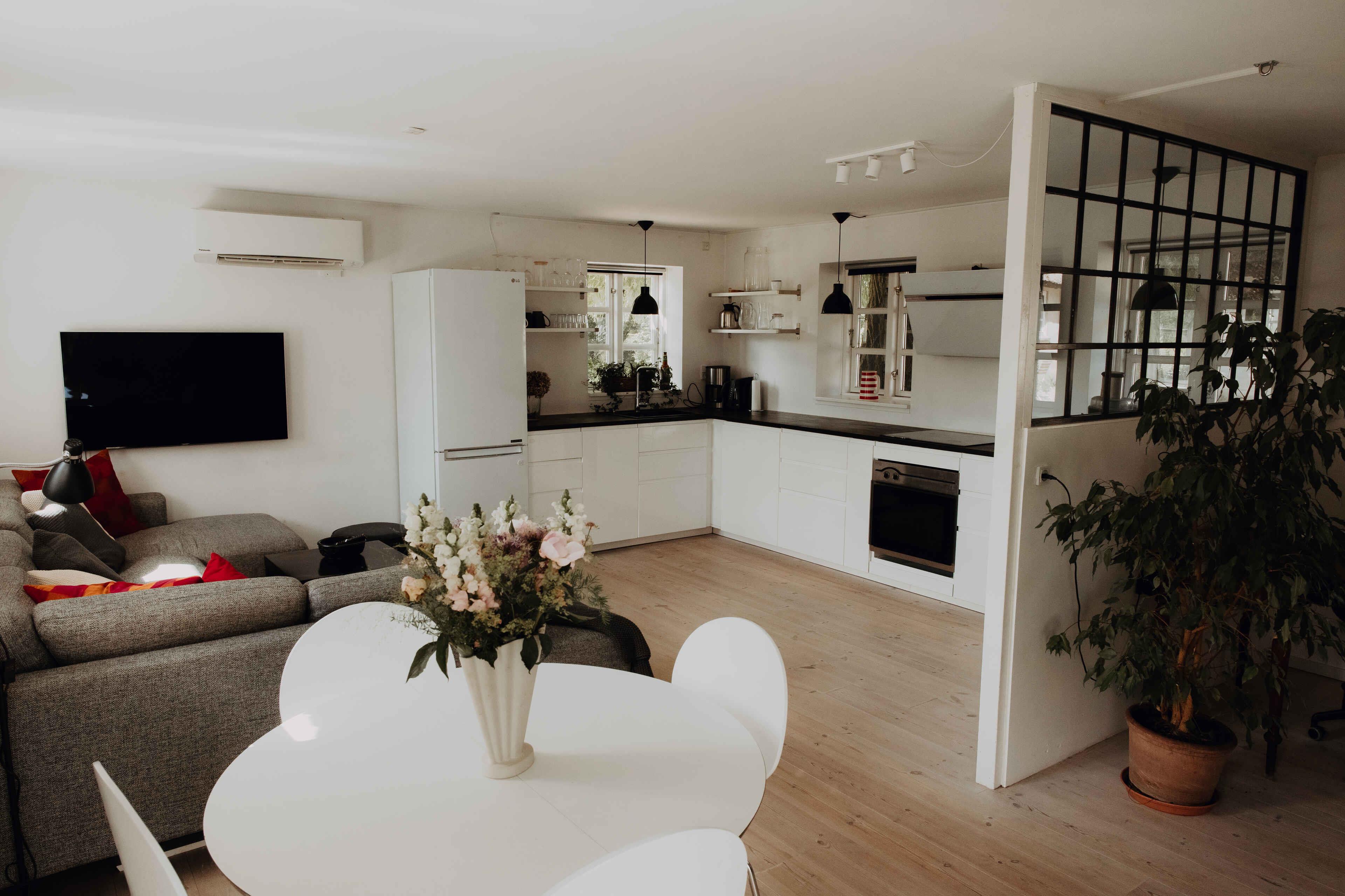 Gårdhuset på 120 m² er indrettet med fokus på ro, funktionalitet og plads. Her er to soveværelser med i alt fire sovepladser, hvilket gør huset velegnet til både familier og par, der ønsker luft omkring sig og god komfort under opholdet. Boligen ligger i forlængelse af ejernes gård, hvor hverdagen leves side om side med naturen. Ejerne bor selv på stedet og har to venlige hunde. På gården findes også en rideskole med mange heste, hvilket giver stedet en levende, men afslappet stemning. Indendørs er huset udstyret med moderne faciliteter som gratis WiFi, aircondition og et fuldt udstyret køkken. Der er både opvaskemaskine, vaskemaskine og en arbejdsplads, så ferien nemt kan kombineres med praktiske gøremål eller hjemmearbejde. Udendørs byder huset på flere opholdsarealer med siddepladser, picnicområde og grill. Der er legeplads til børn, god plads til udeliv og mulighed for at parkere cykler. Det er let at finde et sted i solen – eller skyggen. Området omkring huset er særligt attraktivt for feriegæster. Kun fem kilometer væk ligger nogle af områdets bedste strande samt marina, caféer, butikker og restauranter. Her er der liv om sommeren og ro uden for sæsonen. Inden for gåafstand finder I det kuperede naturområde kendt som Ruslands bakker, der indbyder til vandreture året rundt. Samtidig er der nem adgang til kendte seværdigheder, og København kan nås inden for overskuelig afstand, hvilket giver en fin balance mellem land og by.
