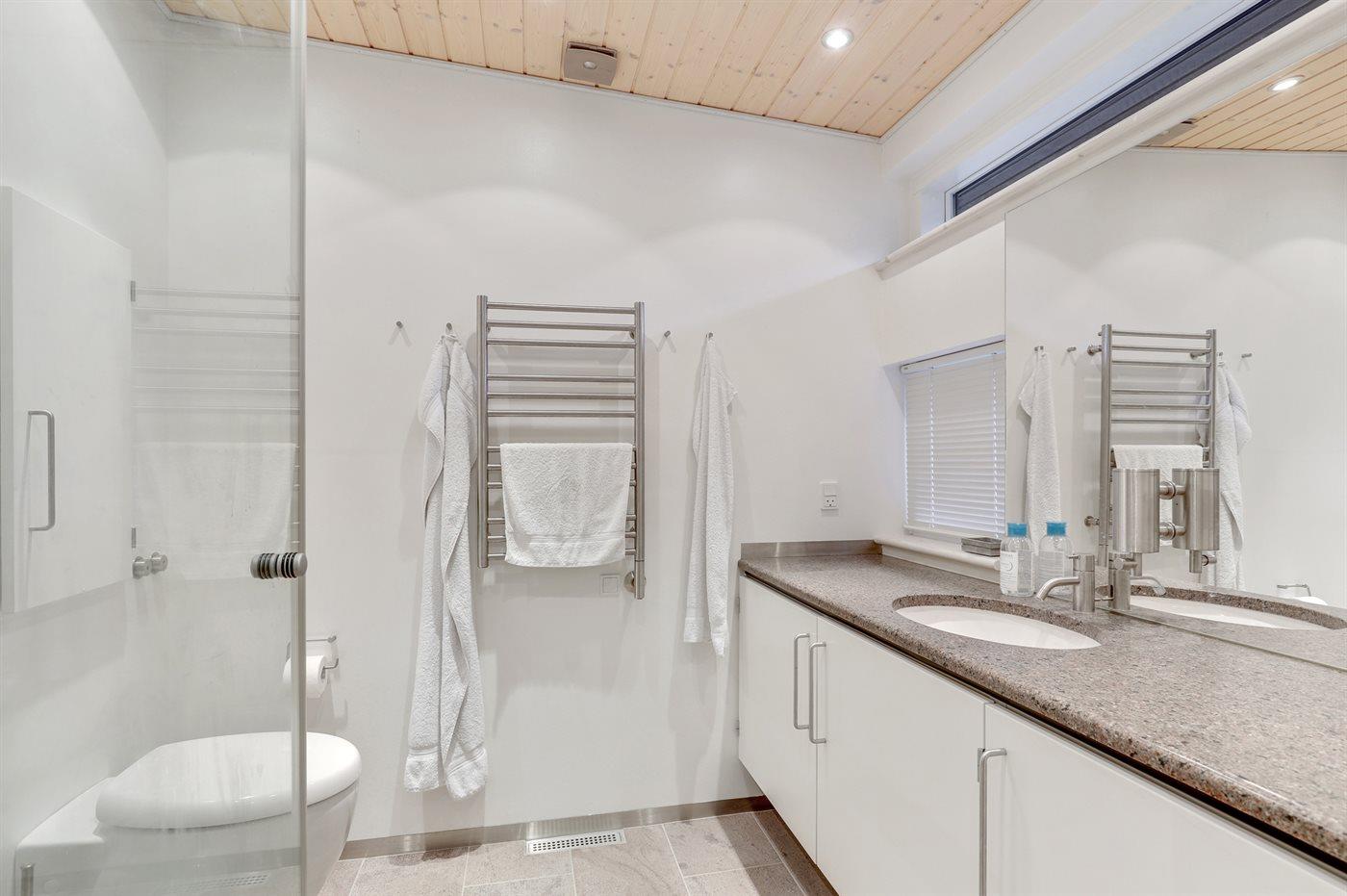 Der er 2 badeværelser med bruseniche og 2 toiletter. Der er gulvvarme på 2 badeværelser.