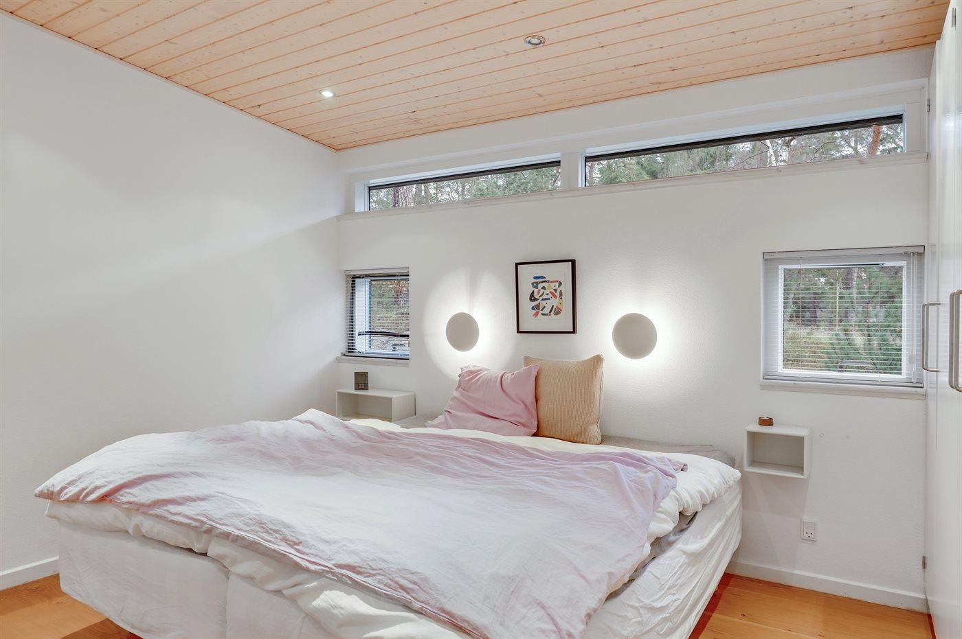 Der er i alt 3 soveværelser. Sovepladserne fordeler sig på: 4 sovepladser i dobbeltsenge. 2 sovepladser i enkeltsenge.