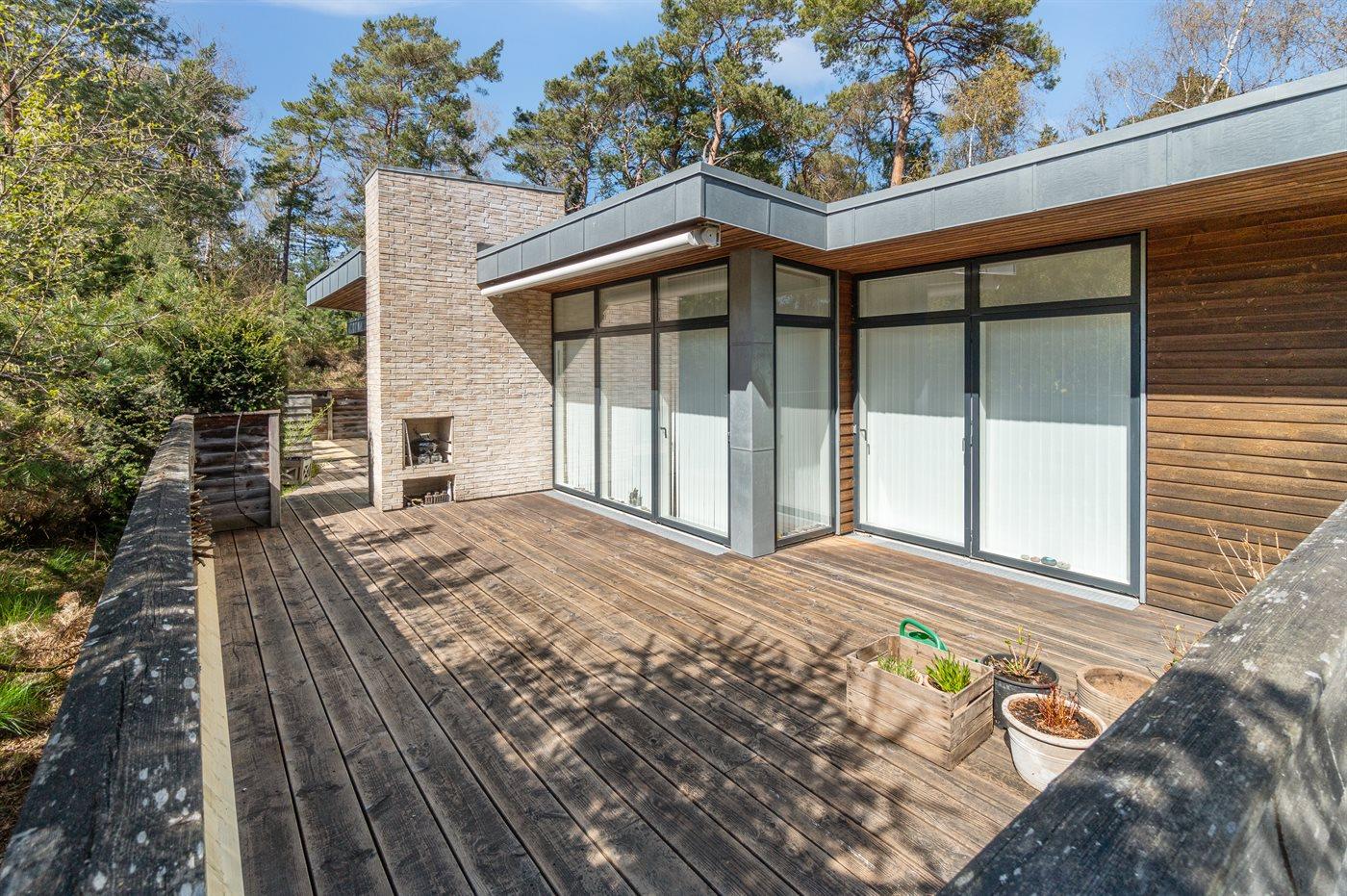 Huset omgives af en veldisponeret og til dels overdækket terrasse, hvor det er muligt, at finde skygge på skønne sommerdage eller nyde de lange lyse aftener.