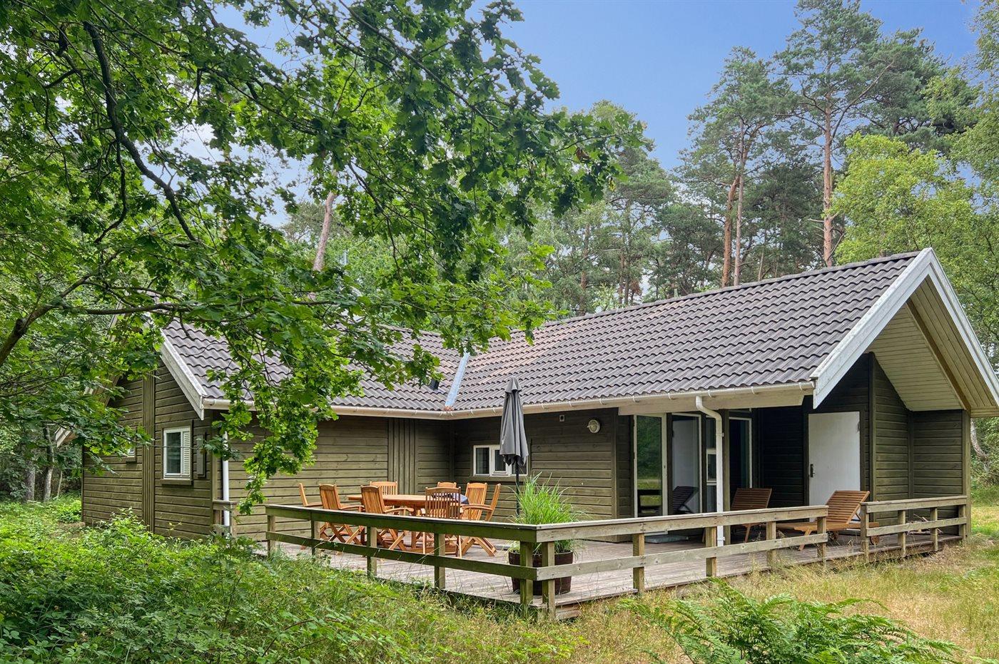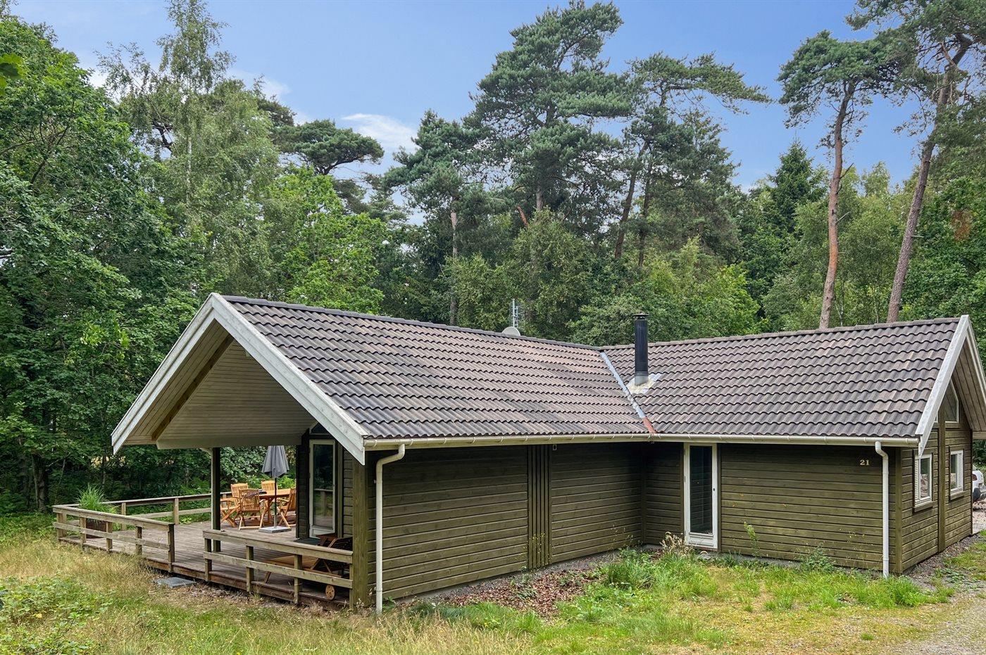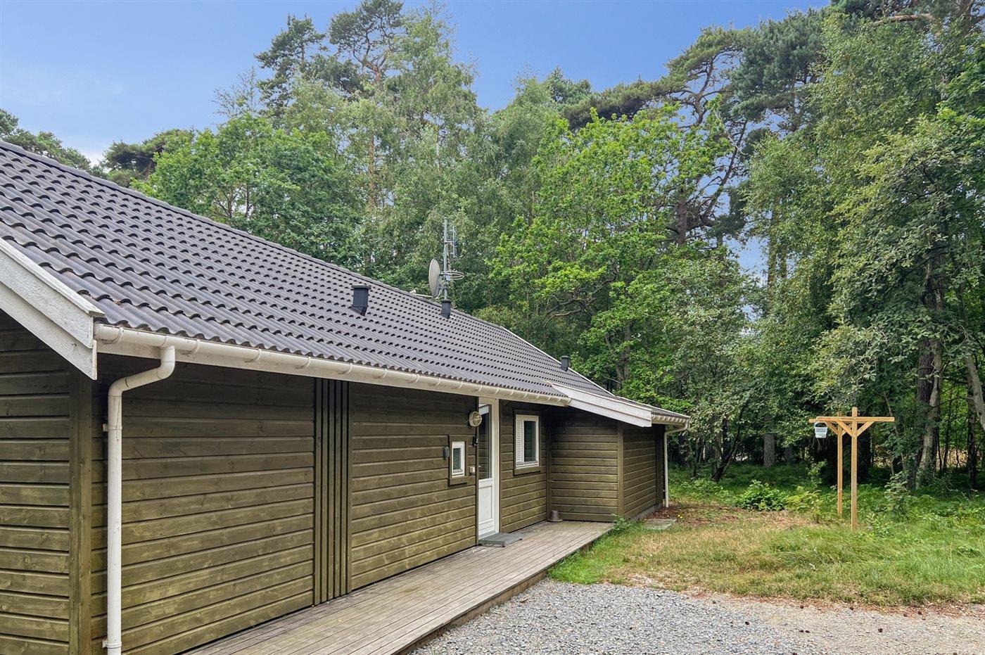 På en skovklædt lille bakketop, midt i skoven ved Jomfrugård, ligger dette herlige og veludstyrede kvalitetssommerhus. Huset ligger kun få minutter fra den flotte sandstrand, hvor man bliver fristet af at gå en tur, at bade eller blot at nyde solen.