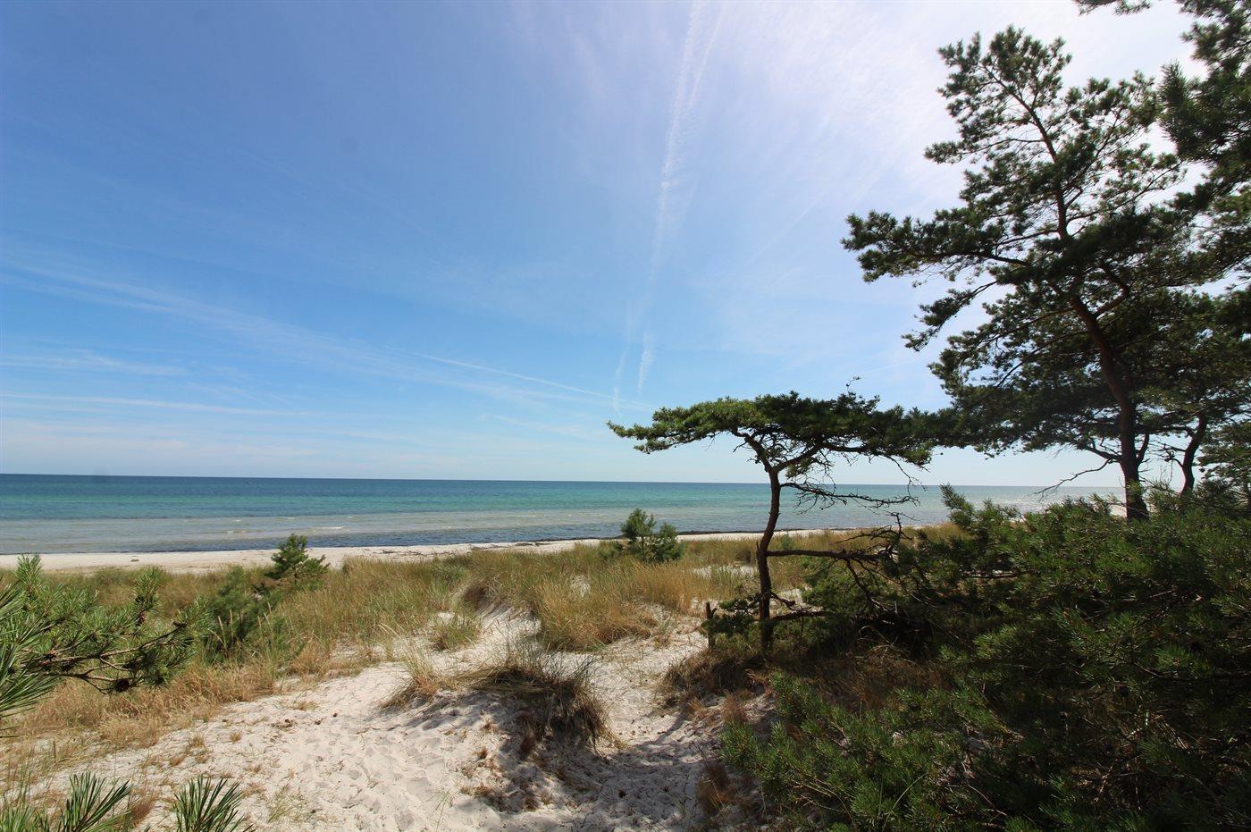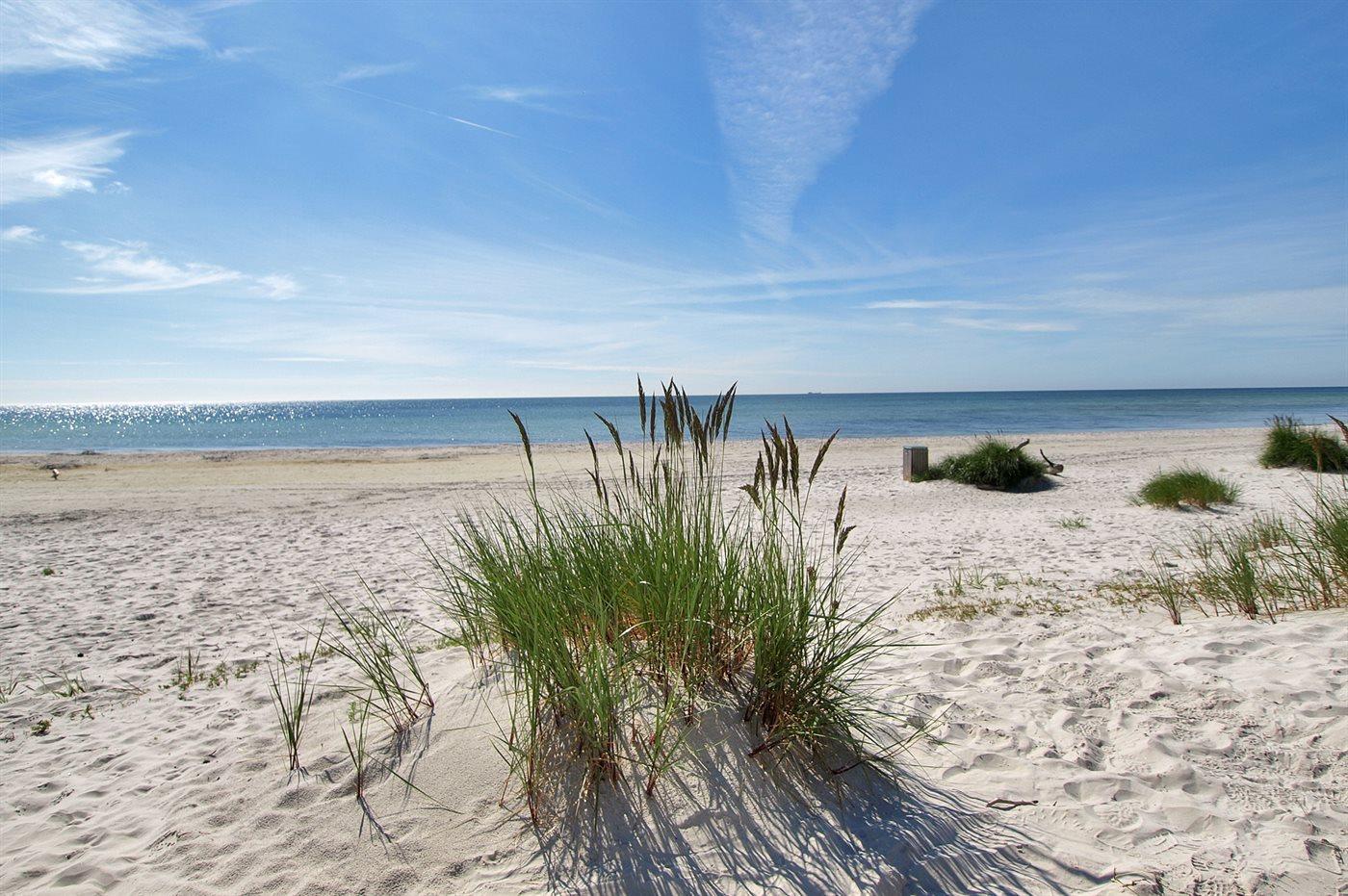 Adgangen til den flotte hvide sandstrand, der strækker sig så langt øjet rækker, foregår ad en gangbro af træ, som fører igennem det vilde klitområde, der imponerer med meget høje sandklitter og et særegent dyreliv med sjældne arter, der trives i strandengene.