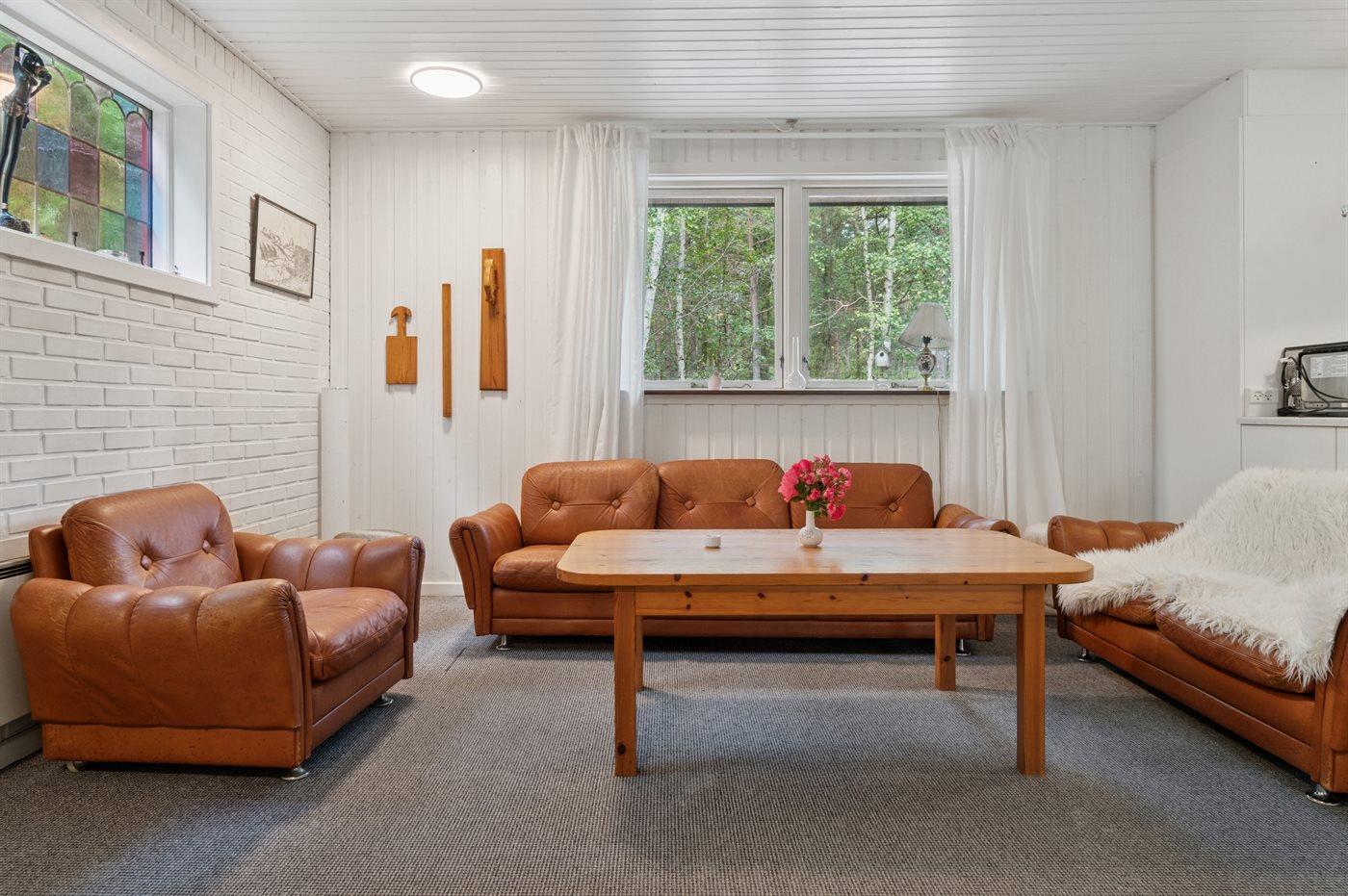 Huset er indrettet med stue kombineret med det åbne køkken og 4 soveværelser, så der er god plads til hele familien. 2 badeværelser er godt at have, når man kan være op til 7 personer i huset. I stuen kan den hyggelige brændeovnen være samlingspunktet, når spil, TV og andre familieaktiviteter kalder på nærvær. Fra terrasserne, hvor der er både fredeligt og roligt kan fuglelivet i træerne følges fra 1. parket.