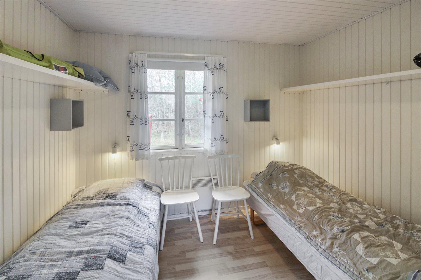 Der er i alt 3 soveværelser. Sovepladserne fordeler sig på: 2 sovepladser i dobbeltseng. 2 sovepladser i enkeltsenge. 2 sovepladser i køjeseng.