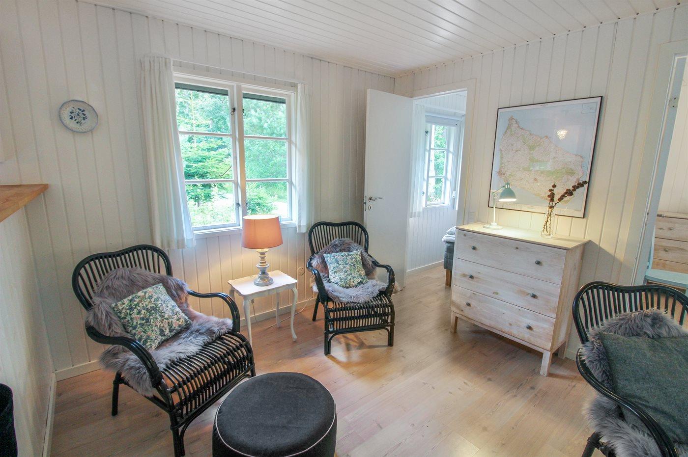 Der er i alt 3 soveværelser. Sovepladserne fordeler sig på: 4 sovepladser i dobbeltsenge. 2 sovepladser i enkeltsenge.