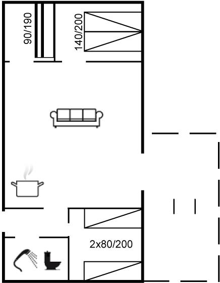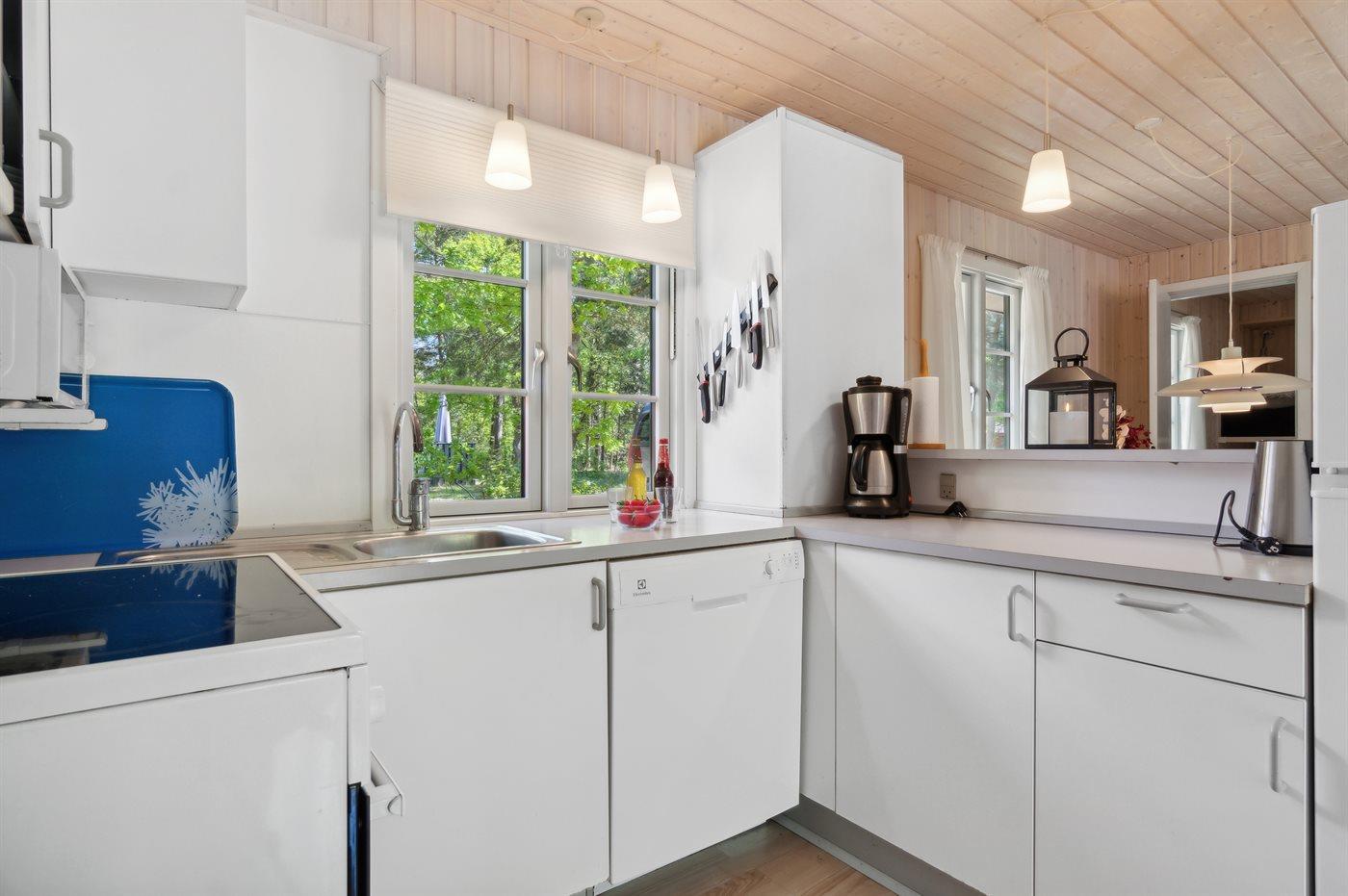 I 2019 er vinduer og døre udskiftet med vinduer og døre med termoglas. Til huset hører åben terrasse med havemøbler. Pænt flisebeklædt badeværelse med gulvvarme og bruseniche. Trægulve i husets øvrige rum. Køkkenet er bl.a. udstyret med opvaskemaskine, mikrobølgeovn, varmluftovn og komfur med keramiske kogeplader. I opholdsstuen, hvorfra der er adgang til husets terrasse finder I brændeovn, CD-afpiller og 55” TV. Husets sovepladser fordeler sig på 1 værelse med dobbeltseng, 1 værelse med 2 enkeltsenge og 1 værelse med køjeseng. Der er barneseng til rådighed.