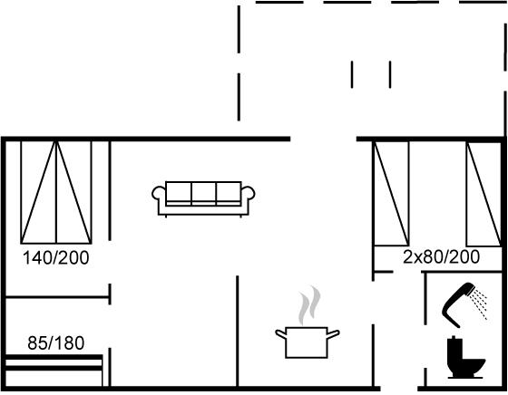 Der er i alt 3 soveværelser. Sovepladserne fordeler sig på: 2 sovepladser i dobbeltseng. 2 sovepladser i enkeltsenge. 2 sovepladser i køjeseng.