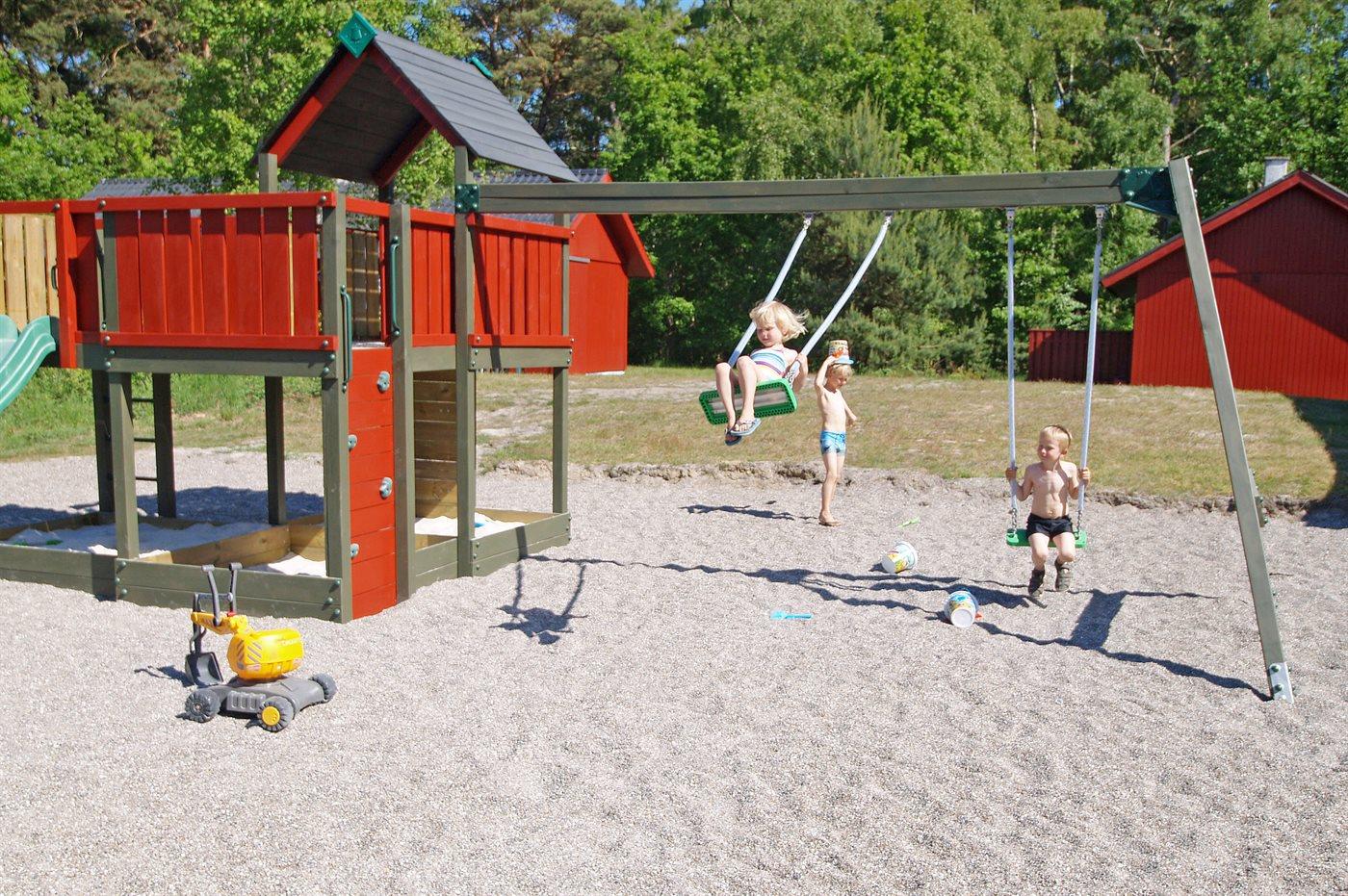 I området findes gynge, rutschebane og sandkasse samt mulighed for at spille fodbold, basketball og petanque. Den store naturgrund mellem husene giver rig mulighed for leg. Bemærk: Udendørs fiskerenseplads med rindende vand samt fryserkapacitet ved centerbygningen.