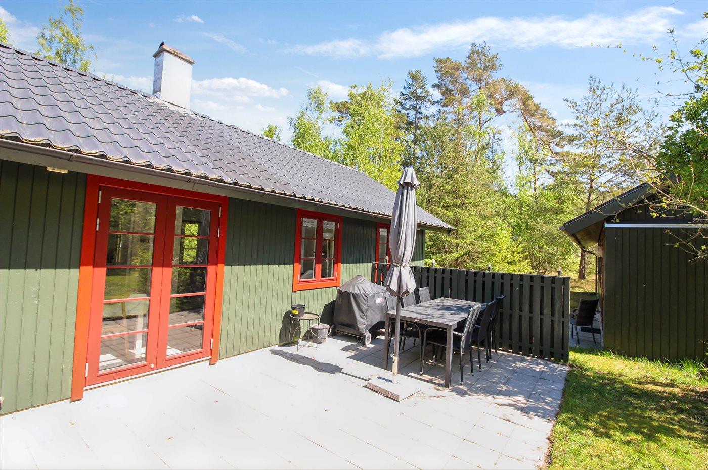 Hyggeligt træsommerhus tæt på Dueoddes strand