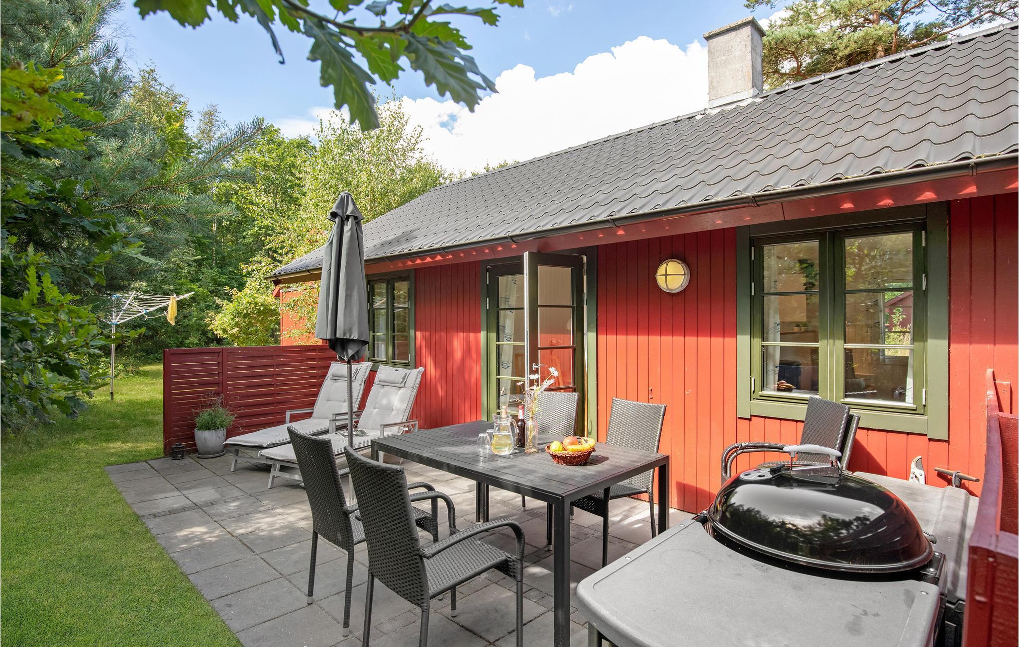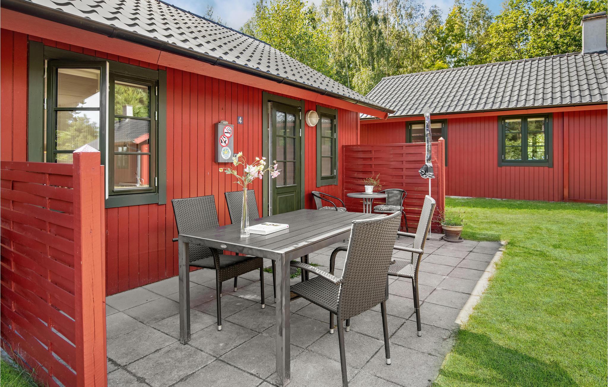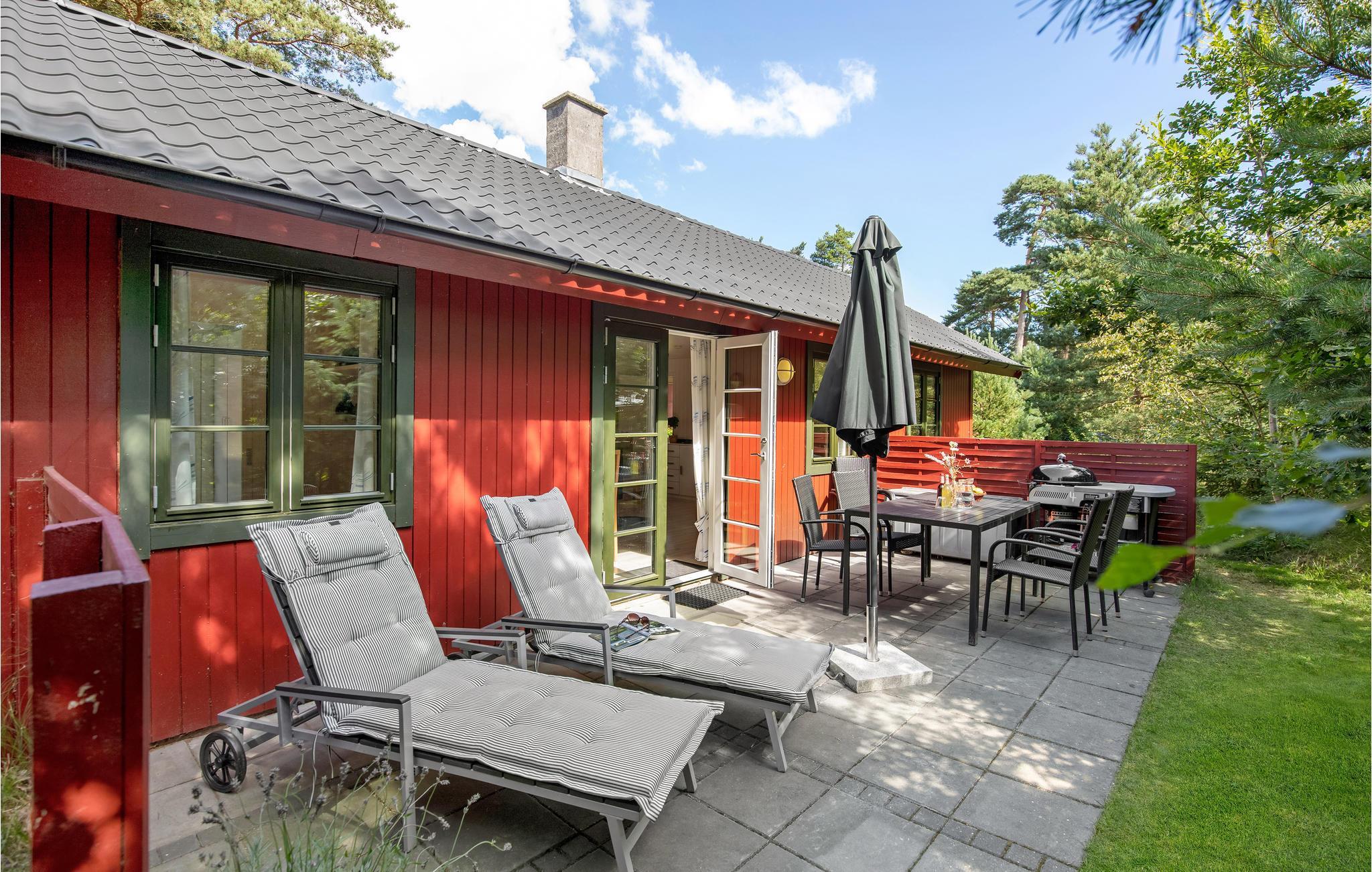 Glæd jer til denne topcharmerende feriebolig, som er i stil med et svensk rødt træhus. Indendørs kan I se frem til lyse, stilrene rammer og en behagelig atmosfære. Dagen igennem kan I nyde solen på terrasserne, som er afskærmet mod forbipasserende, så her venter der jer masser af gode stunder med afslapning og hyggelige måltider.
