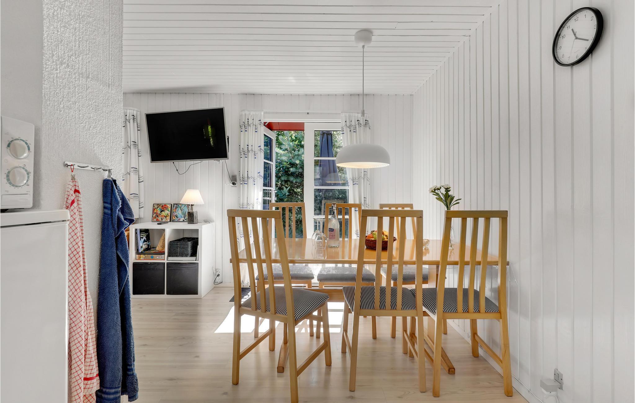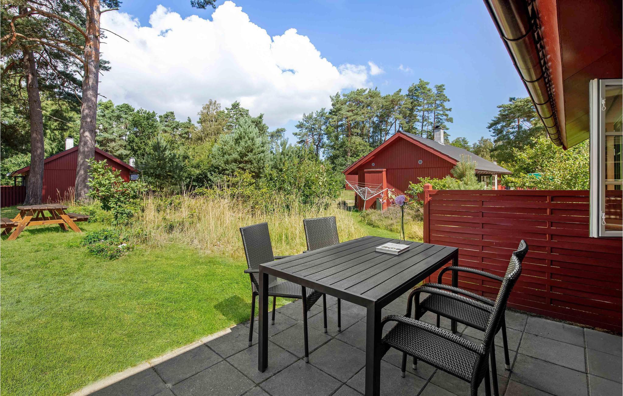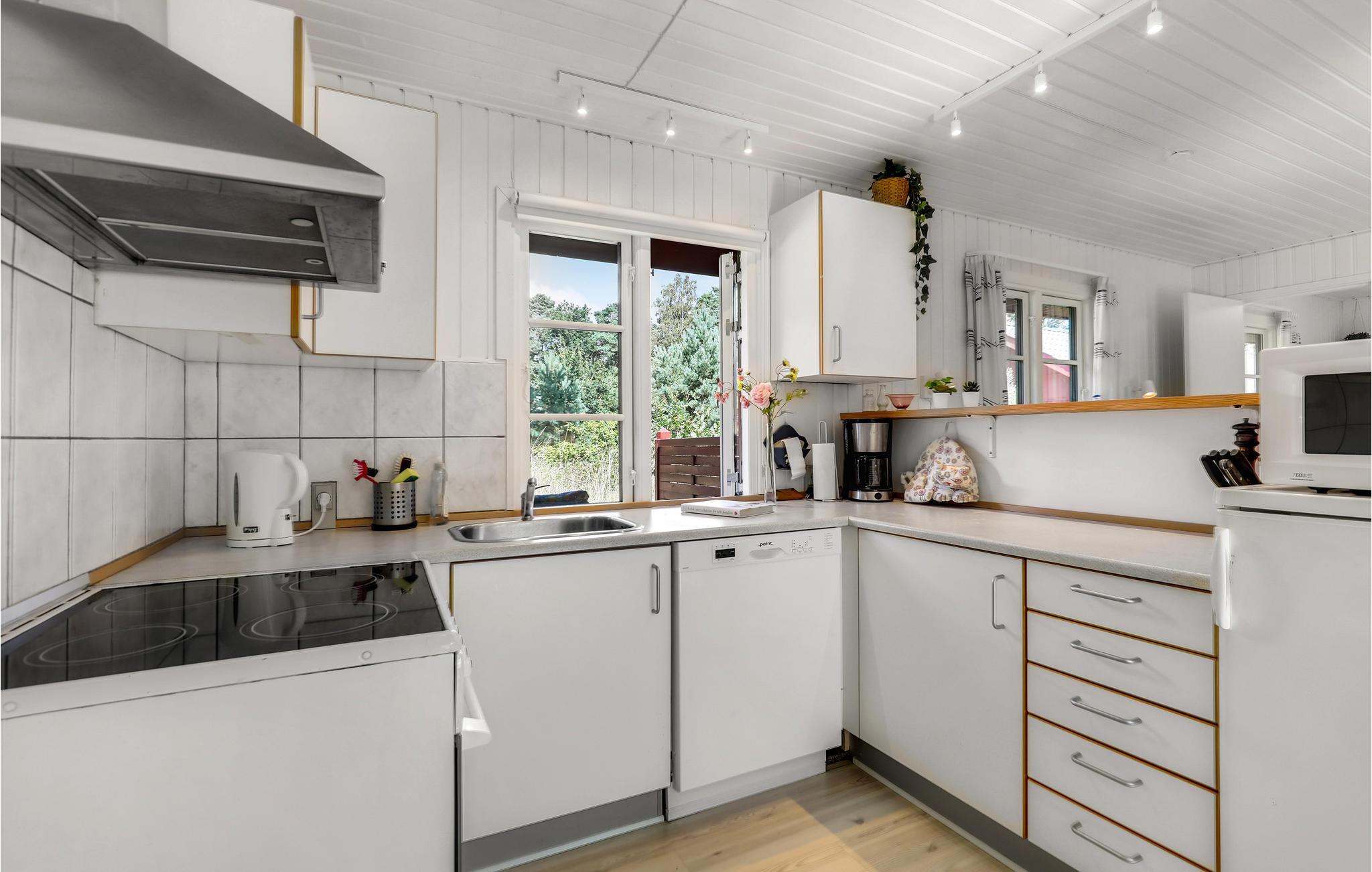 Glæd jer til denne topcharmerende feriebolig, som er i stil med et svensk rødt træhus. Indendørs kan I se frem til lyse, stilrene rammer og en behagelig atmosfære. Dagen igennem kan I nyde solen på terrasserne, som er afskærmet mod forbipasserende, så her venter der jer masser af gode stunder med afslapning og hyggelige måltider.