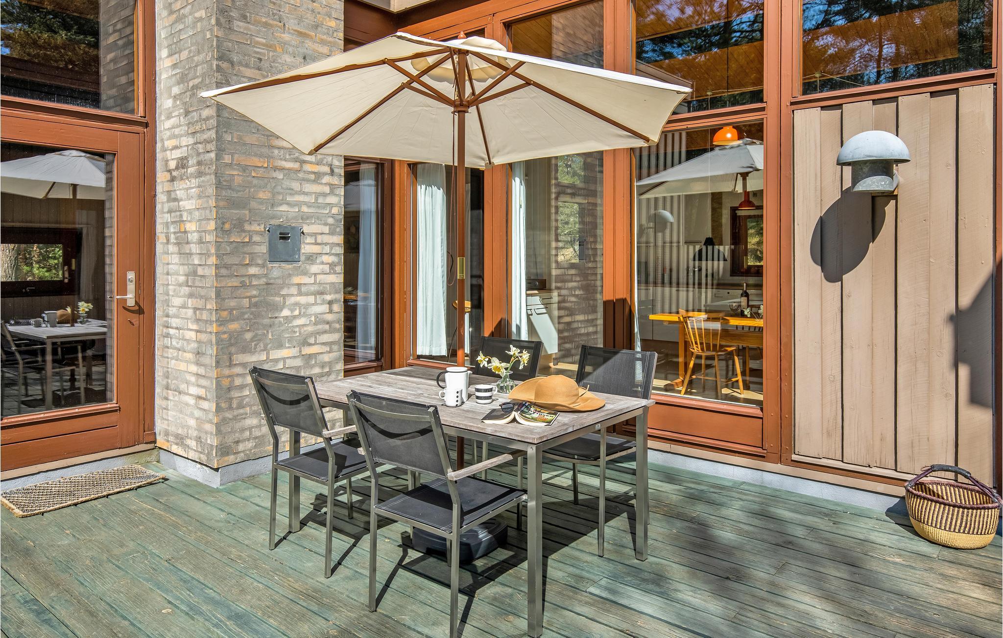 Moderne feriehus nær Dueoddes smukke strand med skov og kyst, perfekte terrasser og charmerende detaljer.