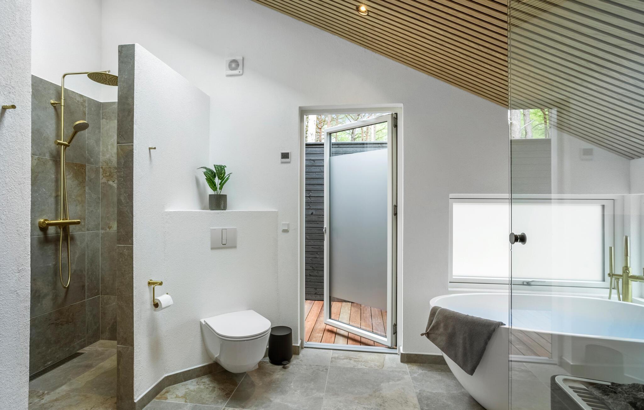 Badeværelse (nr. 1) - WC. Varmt og koldt vand. Bruser